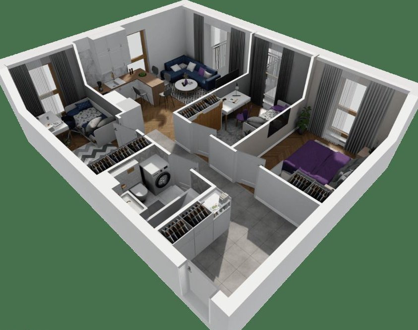* Nieruchomość składa się z salonu z aneksem oraz 3 sypialnie, holu w miejscem na dużą ilość SZAF, łazienki z WC