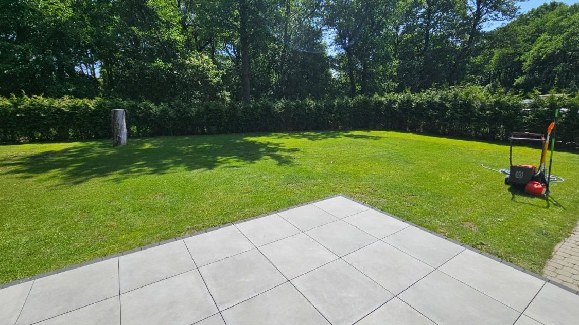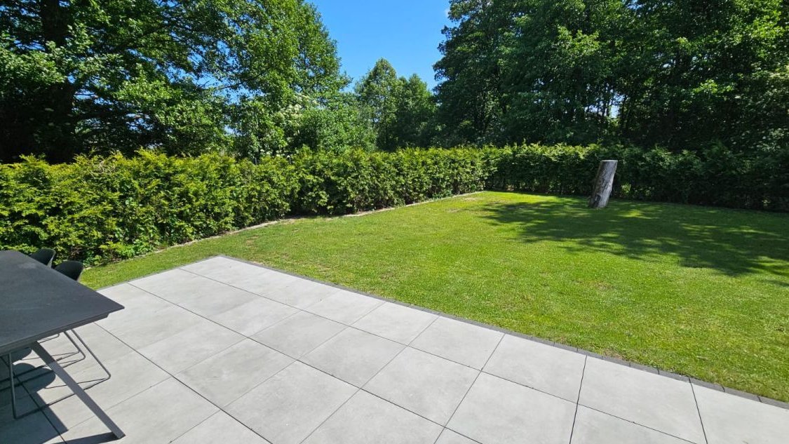Duży, zadbany ogród.