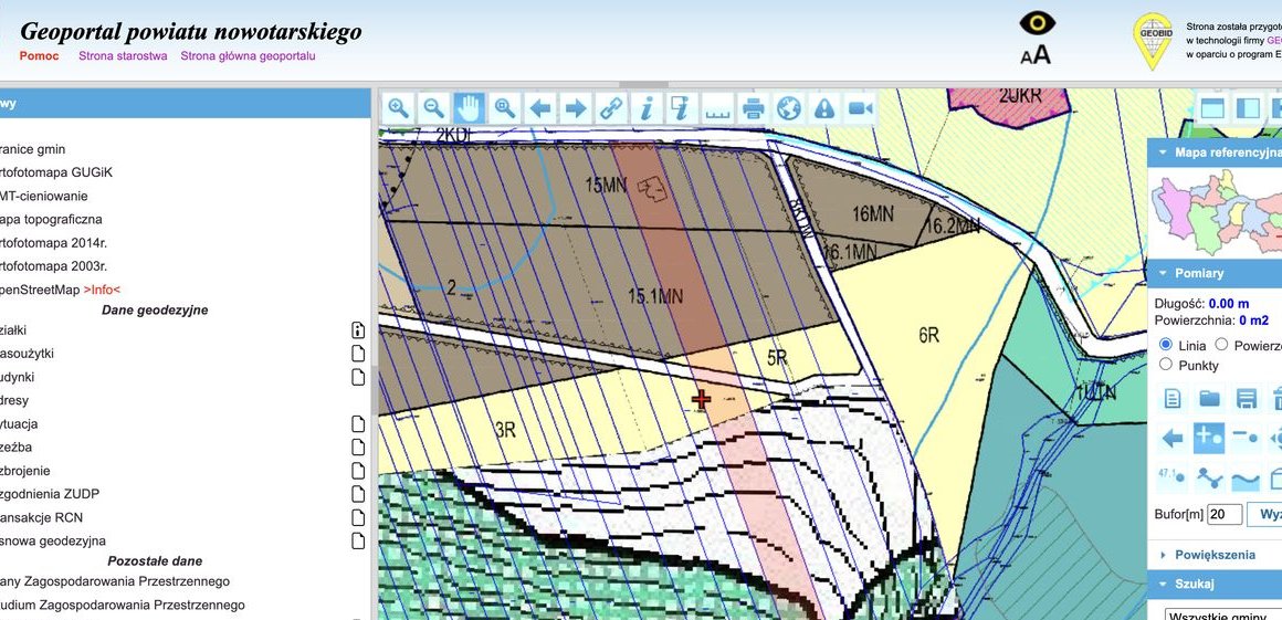 Część budowlana: ok. 144 × 28 m = 4032 m² (ok. 40,32 ara) – teren przeznaczony pod zabudowę MN – teren zabudowy mieszkaniowej jednorodzinnej, (z MPZP - Ustala się szczegółowe zasady i warunki scalania i podziału nieruchomości objętych planem miejscowym (obejmujące również nowe tereny): 1) dla terenu MN ustala się: a) minimalna wielkość działki nie może być mniejsza niż 800m² dla realizacji budynków jednorodzinnych w układzie wolnostojącym lub w układzie bliźniaczym, b) dla realizacji budownictwa pensjonatowego minimalna wielkość działki nie może być mniejsza niż 2500m², c) dla realizacji budownictwa rekreacji indywidualnej minimalna wielkość działki niż 1000m², d) szerokość frontu działki.