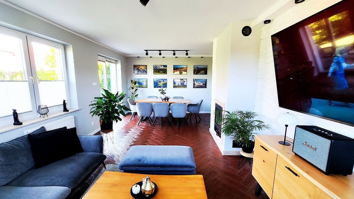 salon ok. 30 m, kominek z płaszczem wodnym, wyjście na taras i do ogrodu
