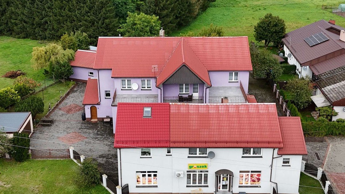 Przedstawiamy Państwu na sprzedaż idealną nieruchomość pod inwestycję składającą się z dwóch budynków usytuowanych na działce o powierzchni 2390 m 2 , która położona jest w miejscowości Brojce, gdzie powstał największy park rozrywki w województwie zachodniopomorskim - HOSSOLAND. W pierwszym budynku na parterze mieści się dobrze prosperujący sklep spożywczy, natomiast na piętrze znajduję się mieszkanie o powierzchni ok. 200 m 2 i składa się z: salonu, 4 sypialni, pomieszczenia biurowego, pralni, łazienki połączonej w WC, kuchni oraz korytarza. W jednej z sypialni są schody, które prowadzą na poddasze. W drugim budynku na parterze znajduję się hala magazynowa (dawna piekarnia), hala cukiernicza, 2 magazyny, łazienka, prysznice, szatnia. 3 wejścia oraz 2 rampy. Na piętrze budynku mieści się mieszkanie z osobnym wejściem klatką schodową i składa się z: salonu, 4 pokoi, kuchni, łazienki, osobnego WC i korytarza. Osobne wejście jest również na strych do własnej adaptacji. Media podłączone do nieruchomości: własne butle gazowe służące do ogrzania nieruchomości i wody, woda i kanalizacja miejska, instalacja elektryczna. Na terenie działki znajdują się: 2 garaże murowane na samochody dostawcze, garaż blaszak, dwustanowiskowy garaż z płyty obornickiej, ogród warzywny. Nieruchomość z ogromnym potencjałem. Zapraszamy do oględzin na żywo. Chętnie odpowiemy na Państwa pytania i Serdecznie Zapraszamy do prezentacji po wizycie w naszym biurze które znajduje się w Gryficach przy ulicy 3-go Maja 10 (przy sklepie Biedronka na przeciwko sądu) lub po uprzednim kontakcie pod numerem telefonu: 509 895 285 lub 885 535 666 .