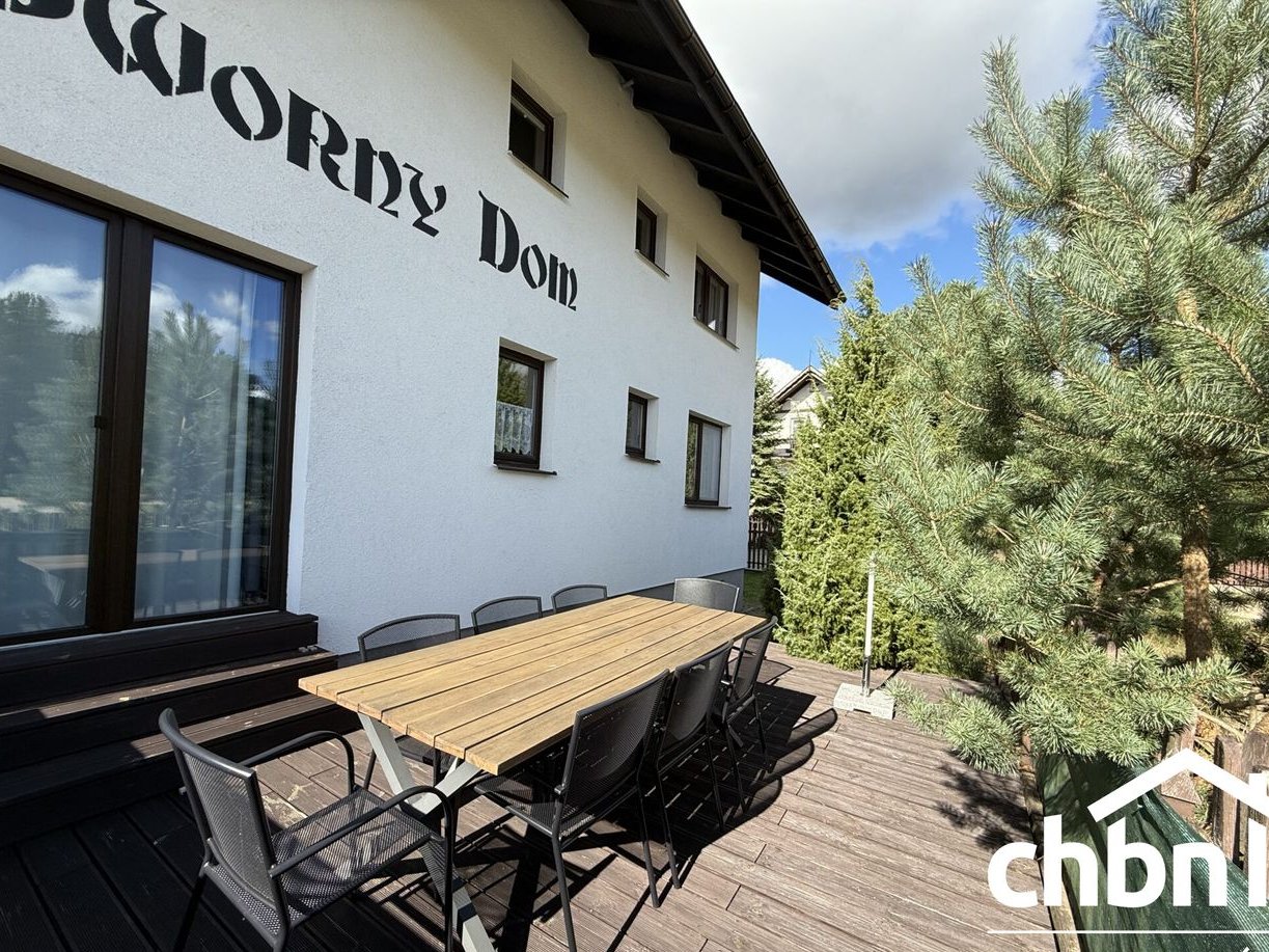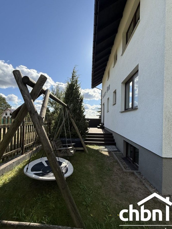 Gotowa infrastruktura: dwie nowoczesne kuchnie, tarasy, balkon widokowy, ogródek z huśtawkami dla dzieci.