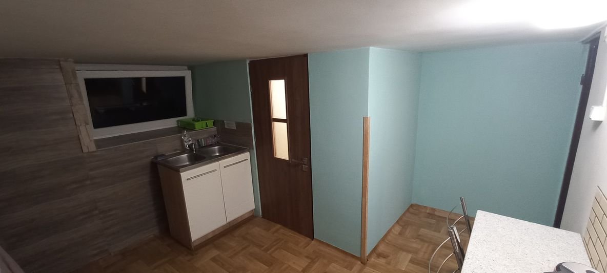 Półpiętro- 3 pokoje, oddzielna kuchnia, łazienka. Wysokość pomieszczeń 2,5-2,6m