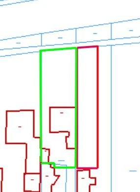 Na ostatnim zdjęciu, kolorem zielonym oznaczono obecną powierzchnię nieruchomości, a kolorem czerwonym działkę sąsiednią do potencjalnego zakupu.