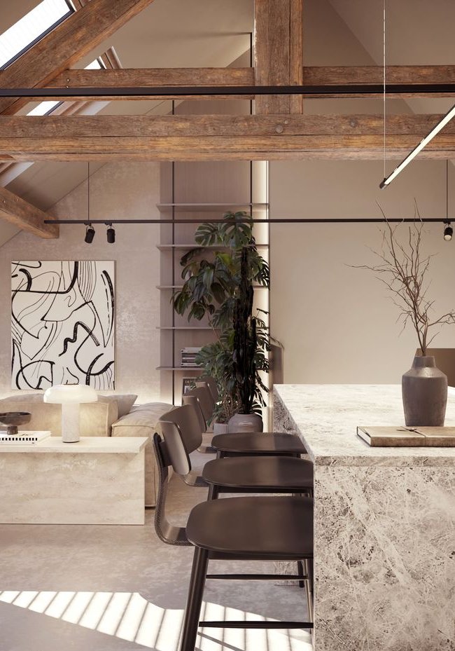 Zabytkowy charakter budynku połączony z nowoczesnym komfortem mieszkania daje unikatowy efekt: przestrzeń została zaprojektowana z poszanowaniem oryginalnej architektury dawnego banku z 1911 roku, z kamienną fasadą i klasycznymi detalami, które dziś stanowią o prestiżu tej inwestycji.