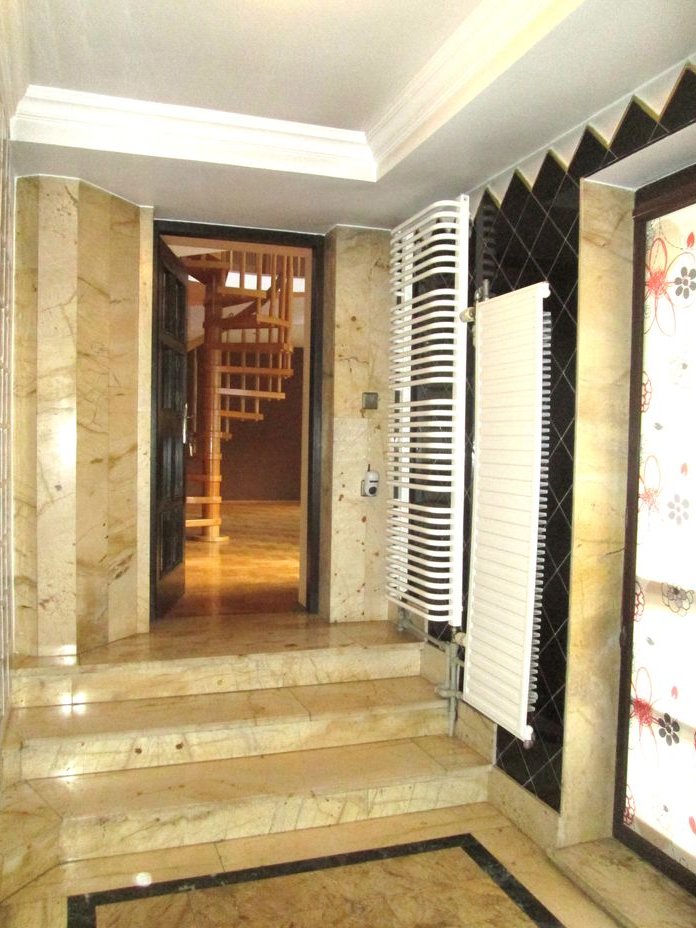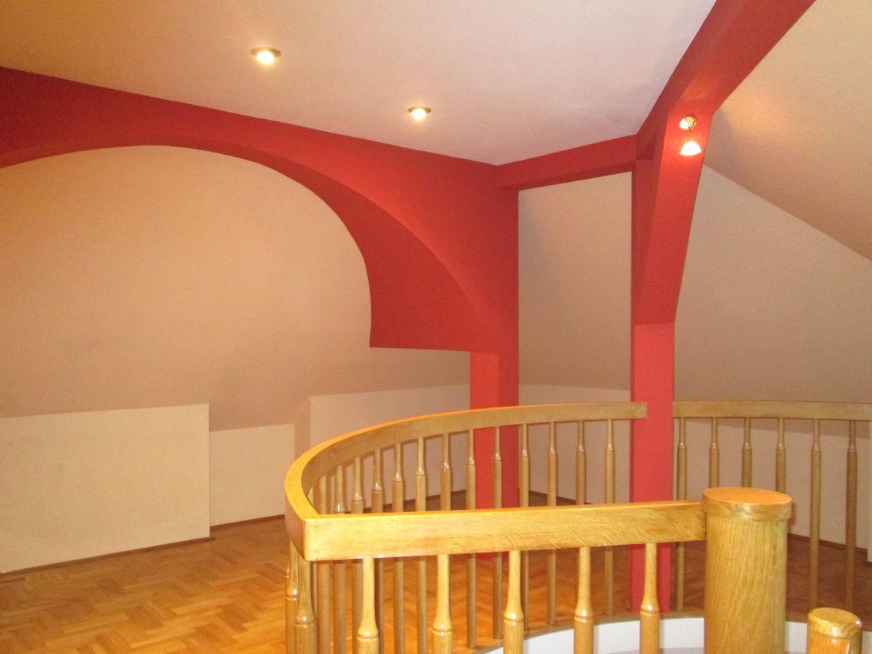 spory balkon, ogromny taras łączący dwie części domu, strych, dwa garaże, które pomieszczą 3 auta, oraz na tym samym poziomie pomieszczenia, które kiedyś spełniały funkcję gabinetów, jak i oczywiście pomieszczenia piwniczne, gdzie znajduje się między innymi kotłownia.