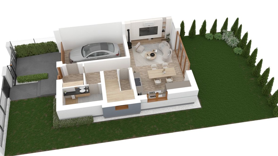 Zapewniamy przestronne pomieszczenia: salon z kuchnią, 2 sypialnie z obszernymi oknami/drzwiami balkonowymi, pokój z balkonem , 2 łazienki z oknami, kotłownia, garderoba, garaż oraz poddasze nieużytkowe.