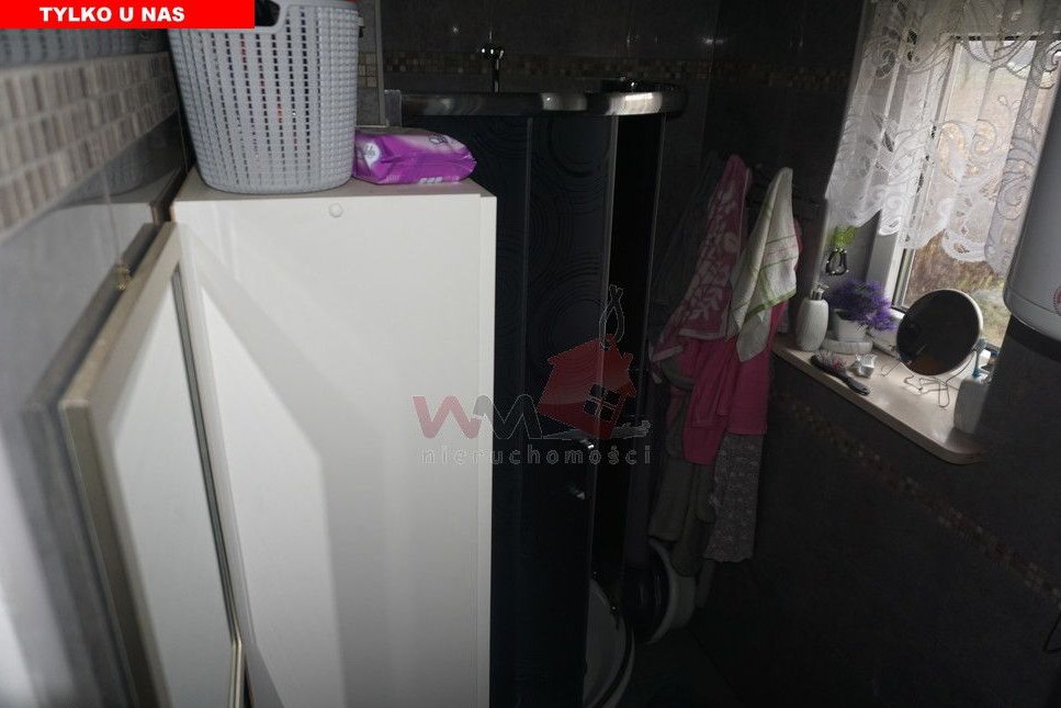 Wykończenie: ściany- gładź, glazura, podłogi- panele i terakota. Ciepła woda z bojlera, ogrzewanie - elektryczne.