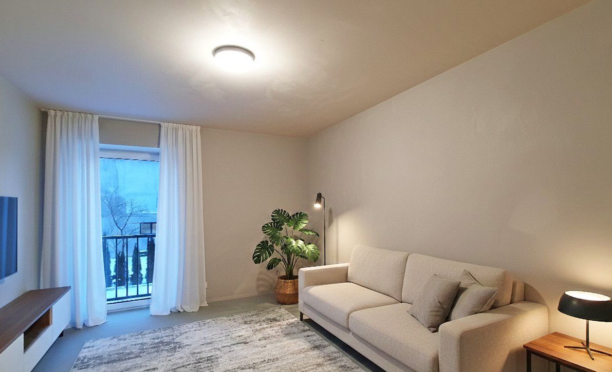 Przestronny salon z balkonem