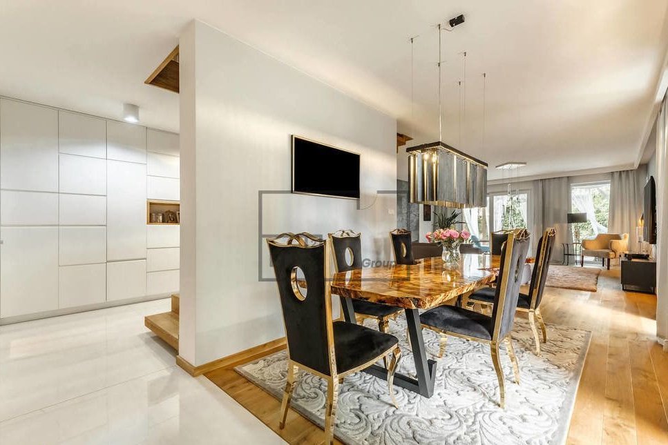 - duży salon z wydzieloną częścią jadalną i wypoczynkową, z kominkiem i wyjściem na taras;