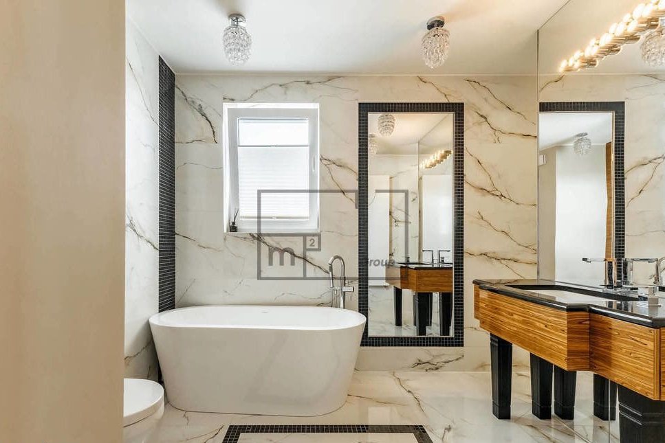 - sypialnię typu master z łazienką z wanną i prysznicem, garderobą i dodatkową toaletką;