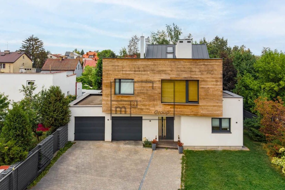 Dom mieszkalny jednorodzinny o zwartej bryle dwóch kondygnacjach naziemnych i poddaszu użytkowym. Bryła została zaprojektowana w kształcie dwóch prostopadłościanów kondygnacji parteru i pietra, postawionych jeden na drugim górny przekręcony o 15 stopni względem dolnego. Ponad tą bryła znajduje się poddasze użytkowe częściowo zadaszone wielospadkowym dachem stromym. Na stropodachu zaprojektowano taras dachowy o pow. 80m2.