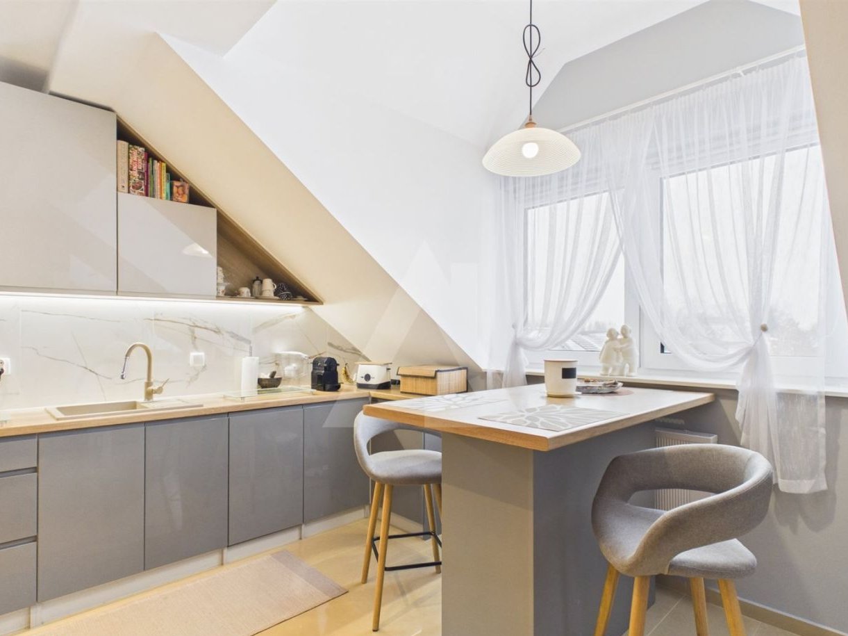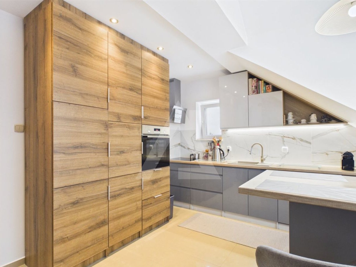 Dodatkowym atutem jest garderoba na półpiętrze- inteligentne rozwiązanie pozwalające zaoszczędzić miejsce i zwiększyć funkcjonalność wnętrza.