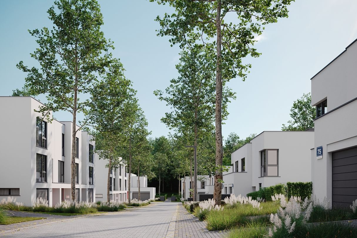 - domy w zabudowie bliźniaczej o powierzchni 164 m² na działkach ok. 400 m²,