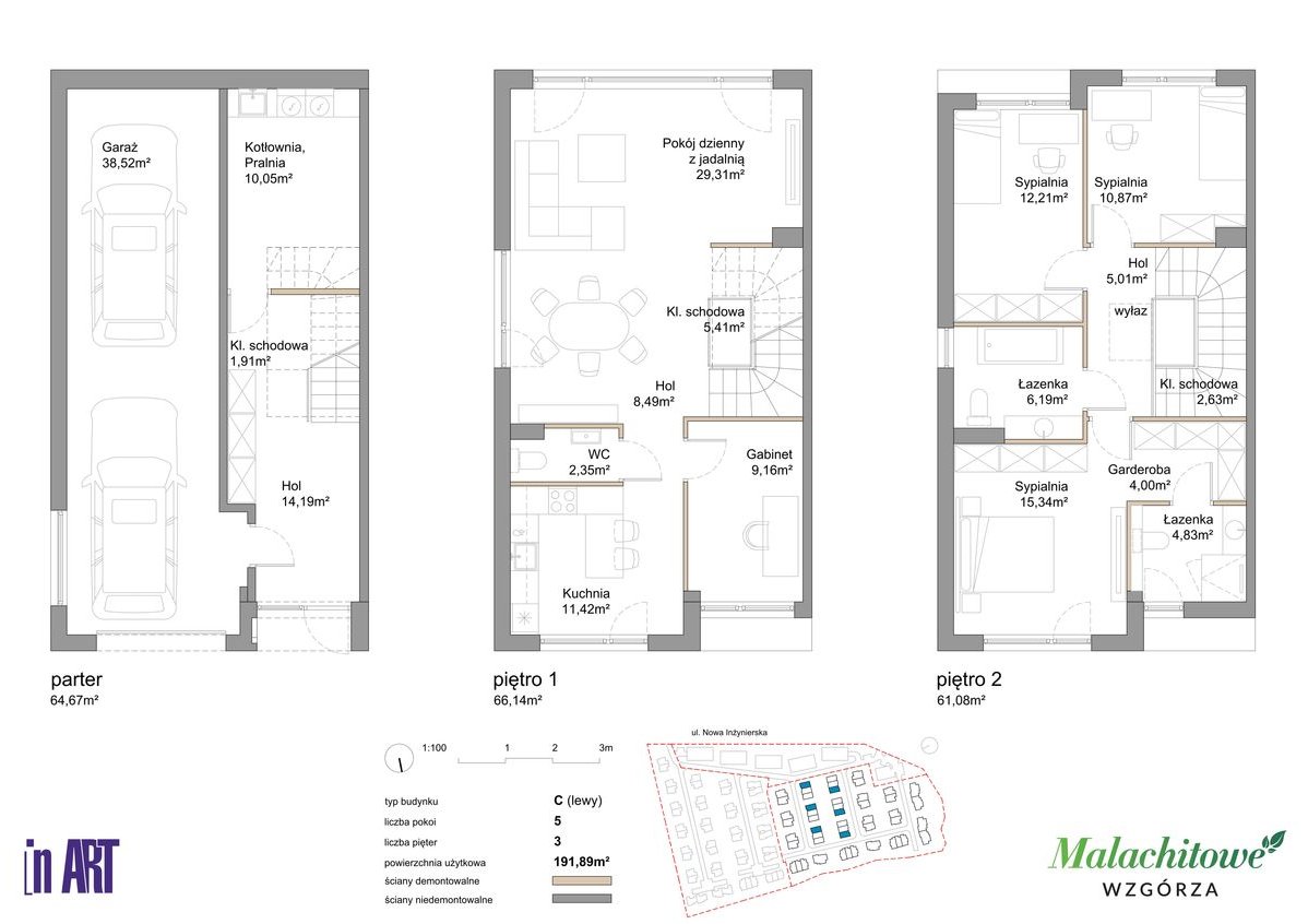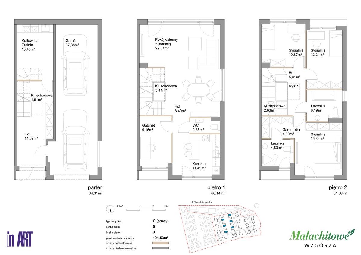 - domy w zabudowie bliźniaczej o powierzchni 191-193 m² na działkach do 280-510 m²,