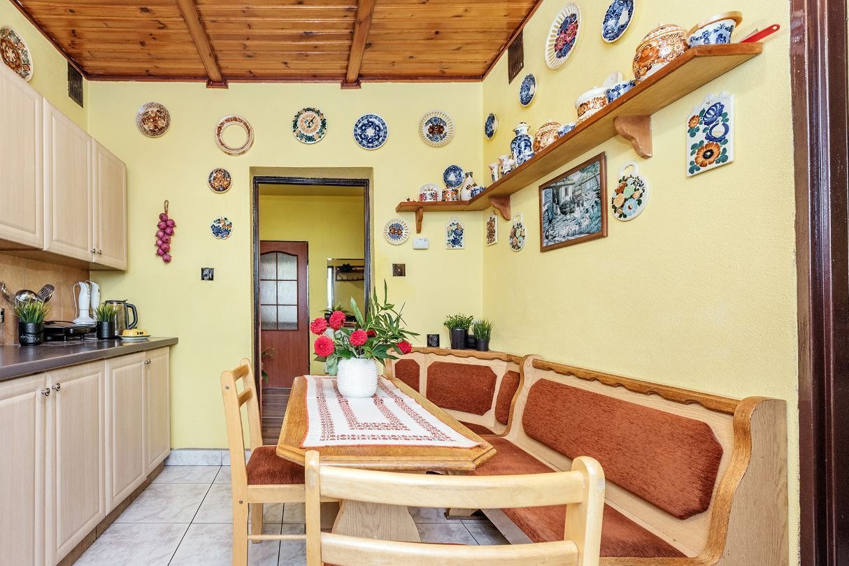 Również dom, choć wybudowany w latach 70 – tych XX wieku (gruntowny remont w roku 2018), może stanowić doskonałe rozwiązanie kłopotów mieszkaniowych dużej rodziny i/lub rodziny wielopokoleniowej. Na dwóch kondygnacjach (wysokim parterze i pierwszym piętrze) są dwa całkowicie niezależne, w pełni funkcjonalne 3 – pokojowe mieszkania (z kuchnią i łazienką). Mieszkanie na parterze ma 94, a na piętrze 85 metrów kwadratowych powierzchni użytkowej. Łączna powierzchnia z przyziemiem (garaż, kotłownia, kilka pomieszczeń magazynowych) to 260 mkw.Jakkolwiek dom został zaprojektowany wg standardów sprzed kilku dekad to jednak jego funkcjonalność dla tego typu użytkowania (dwa niezależne gospodarstwa domowe) jestniezwykle wysoka. Wnętrza są niedawno odświeżone, instalacja elektryczna całkowicie wymieniona (2023 r.) i praktycznie można się wprowadzić zaraz po zakupie. Nie muszę dodawać, że tego rodzaju inwestycja będzie niezwykle atrakcyjna z punktu widzenia finansowego : dwa mieszkania o podobnym metrażu w Krakowie to koszt około 2 milionów złotych! (bez garażu i/lub miejsc parkingowych, bez ogrodu, w hałasie i gęstej zabudowie). Dodatkowym atutem jest oczywiście ogród (1160 mkw) – całkowicie wystarczający do relaksu, na grilla, plac zabaw dla dzieci. Istniejące zagospodarowanie - drzewa i krzewy owocowe, ozdobne,zadbany trawnik - jestpraktycznie "bezobsługowe" (poza rekreacyjnym koszeniem trawy).