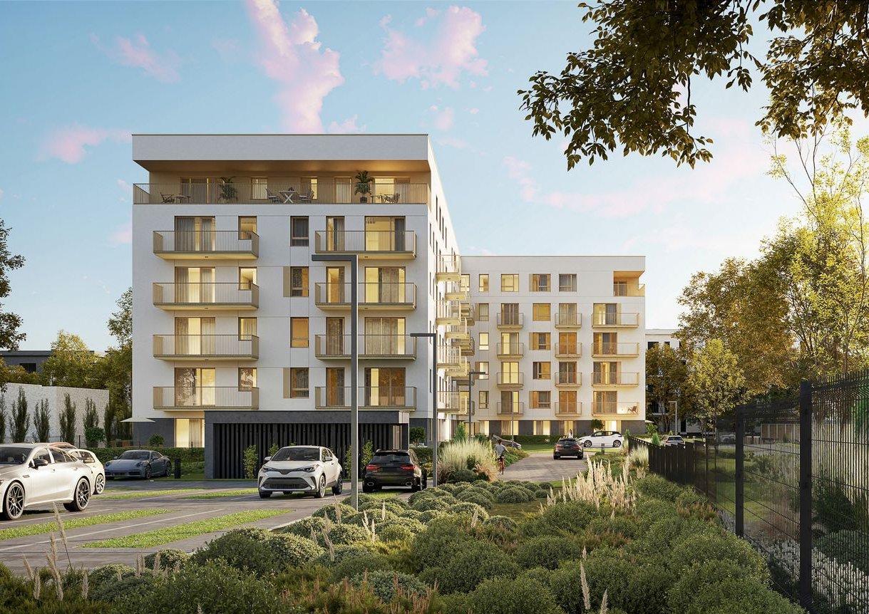 Nowoczesna architektura osiedla łączy estetykę z funkcjonalnością. Duże przeszklenia w budynkach zapewniają maksymalne nasłonecznienie, przekładając się na przytulne wnętrza. Budynki oferują przestronne balkony, kameralny układ mieszkań oraz wysokiej jakości materiały wykończeniowe, które współgrają z otaczającą je zielenią.
