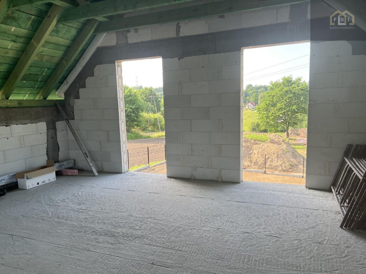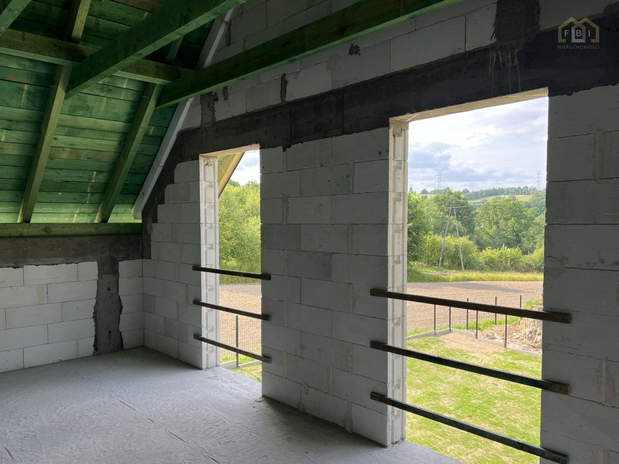 Budynek w stanie surowym otwartym, o powierzchni 100 m2 usytuowany na działce wielkości ok. 500 m2. Murowany w technologii tradycyjnej z betonu komórkowego, dach pokryty dachówką ceramiczną BRASS.Działka ogrodzona, podjazd utwardzony.