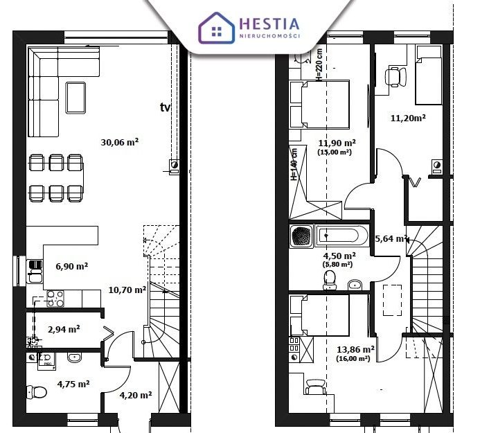 ✅ Dwie pełne kondygnacje – bez skosów