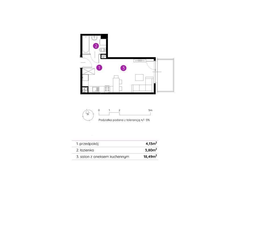 - Pokój z aneksem kuchennym – 18,49 m²