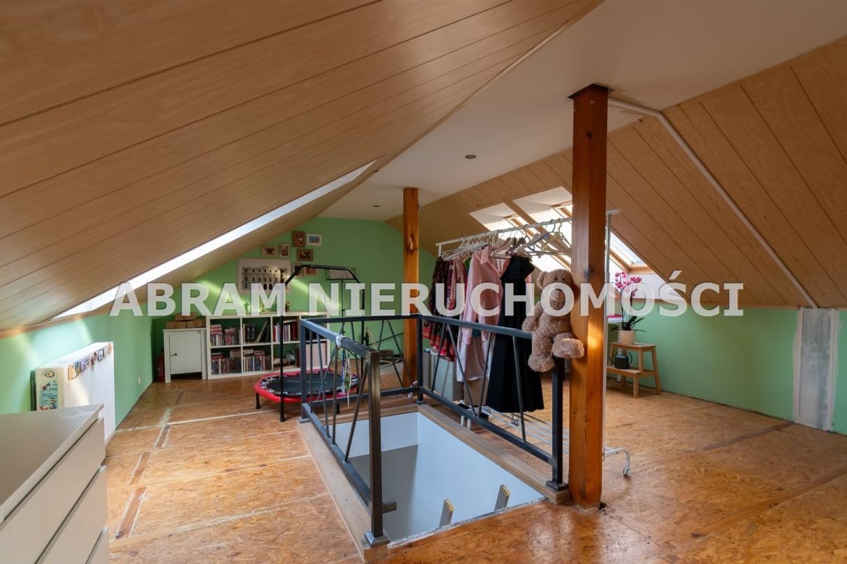 Poddasze (antresola): przestrzeń nieużytkowa, pięknie doświetlona – zamontowano aż 6 okien dachowych z roletami firmy Velux.