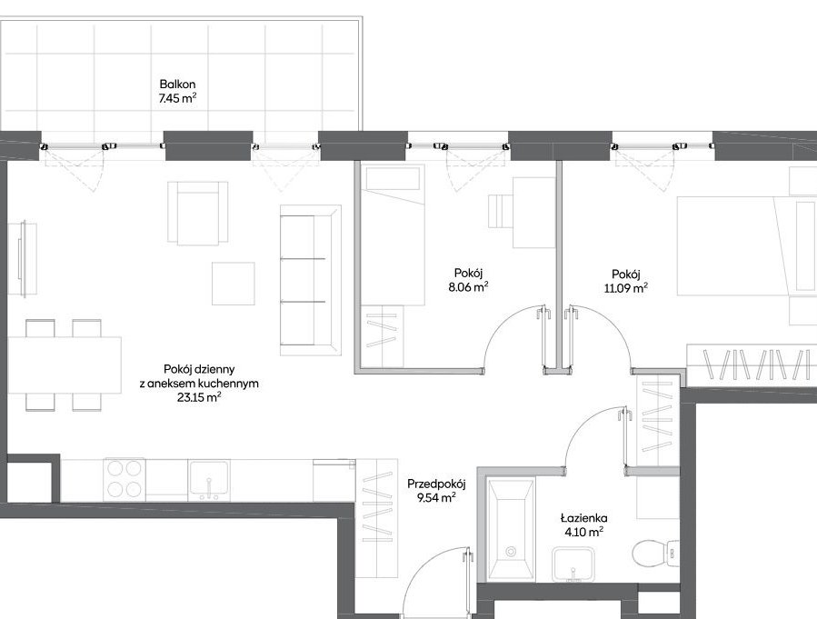 Do nabycia bez prowizji 3 pokoje o powierzchni 56.53m2 w zrealizowanej inwestycji w rejonie ul. Instalatorów na warszawskim Rakowie, w pobliżu Al. Krakowskiej i stacji PKP Rakowiec. Mieszkanie składa się z foremnego kwadratowego salonu z otwartą kuchnią o powierzchni ponad 23m2, 2 sypialni około 11m2 i 8m2, dużej łazienki ponad 4m2. Do mieszkania przynależy balkon o powierzchni 7,45 m2. Odbiór kluczy styczeń 2026.