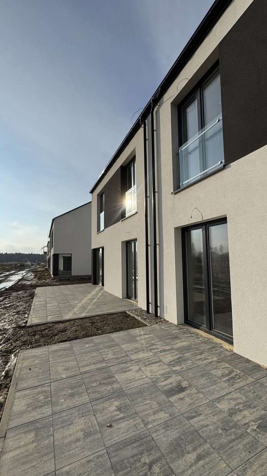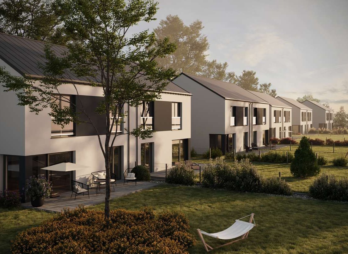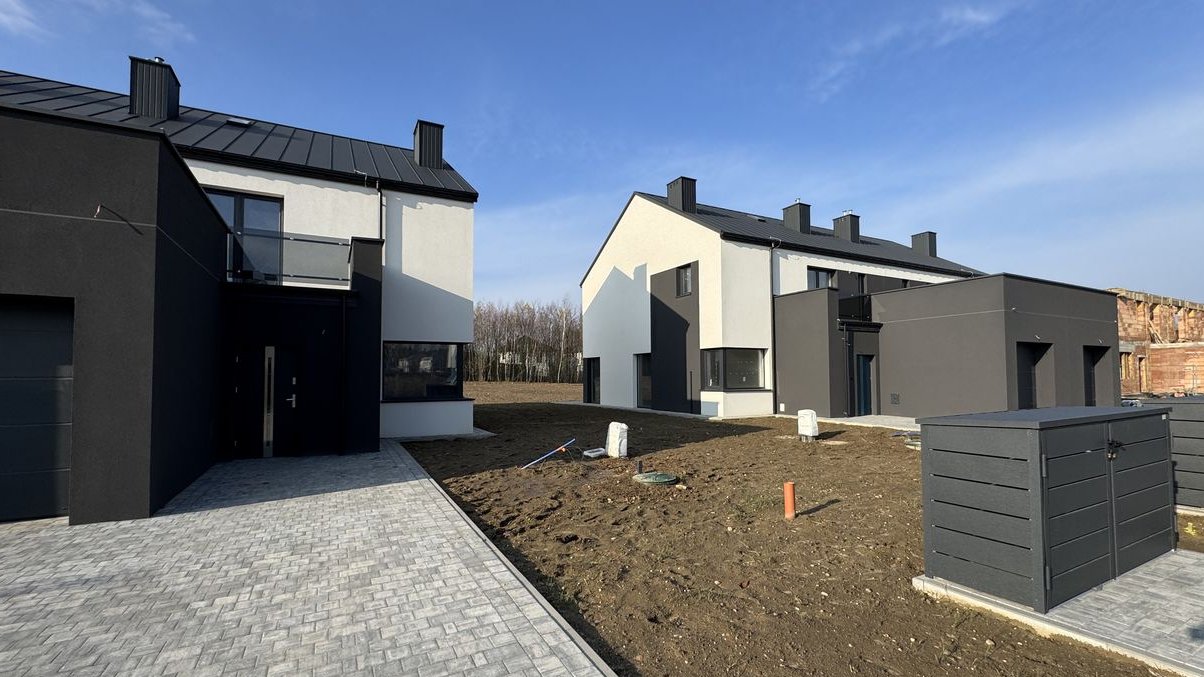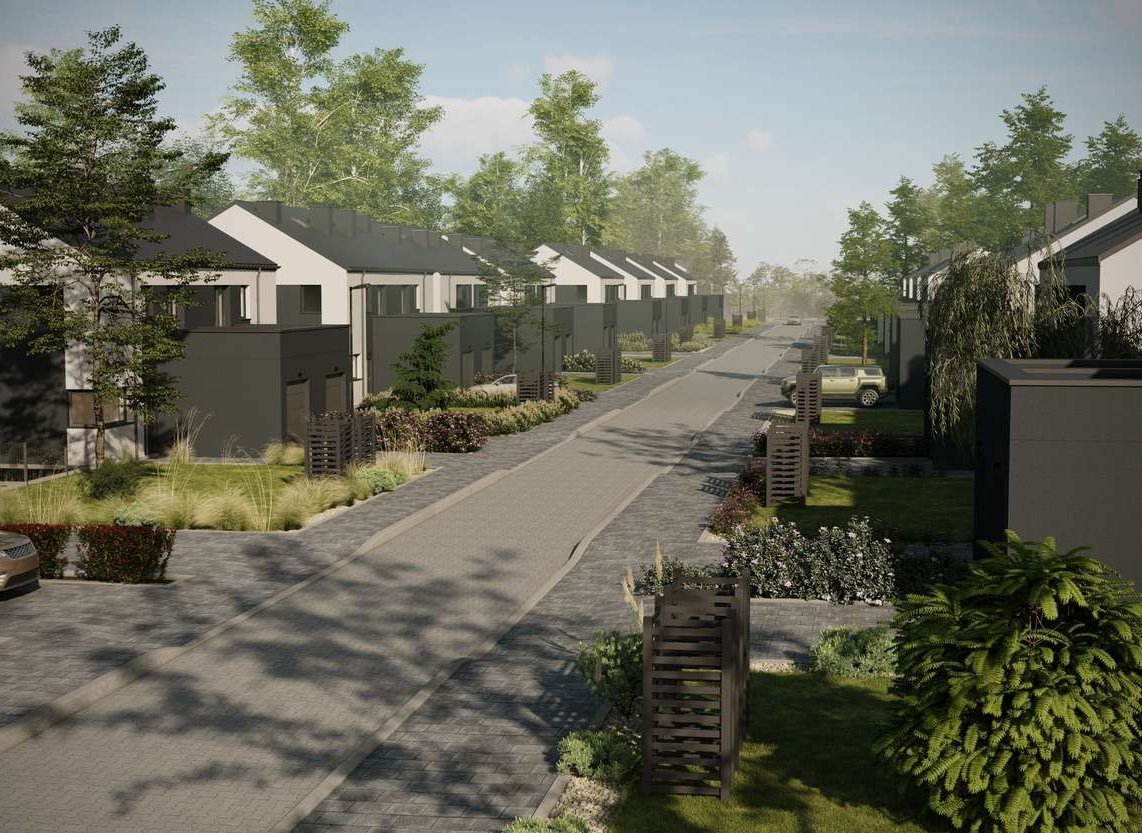Nowe domy w Nowosolnej z furtką do lasu