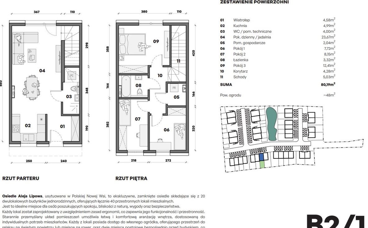 Osiedle Aleja Lipowa to nowa, kameralna inwestycja w Polskiej Nowej Wsi, obejmująca 20 budynków dwulokalowych (40 mieszkań) w zabudowie jednorodzinnej.