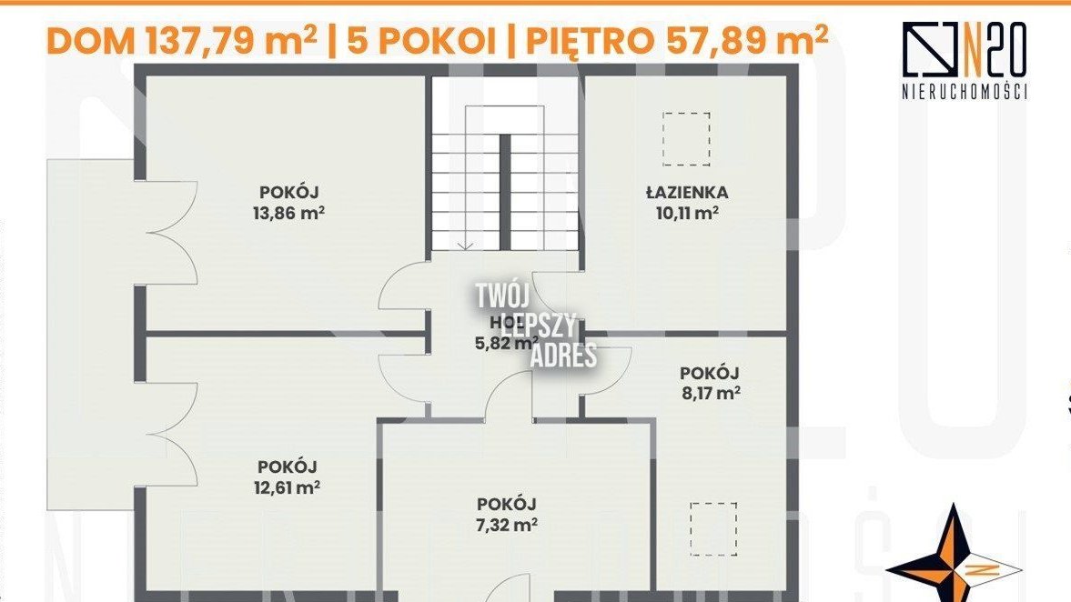 Na parterze znajduje się wiatrołap, przedpokój, łazienka, salon z aneksem kuchennym, kotłownia i garaż. Na piętrze znajdują się cztery sypialnie oraz łazienka (możliwość trzech sypialni oraz dużej garderoby).