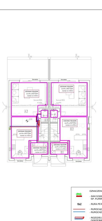 grzewcza gazowa ( piec dwufunkcyjny, zamotowany w łazience na piętrze), cały dom ogrzewanie podłogowe ( można zmienić pod wymagania klienta )