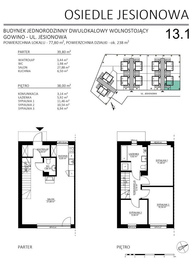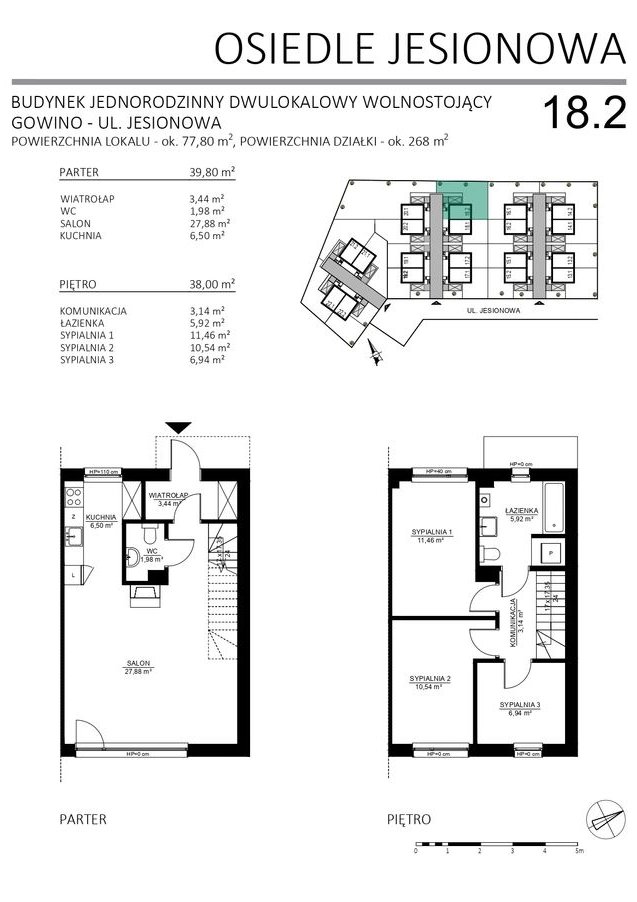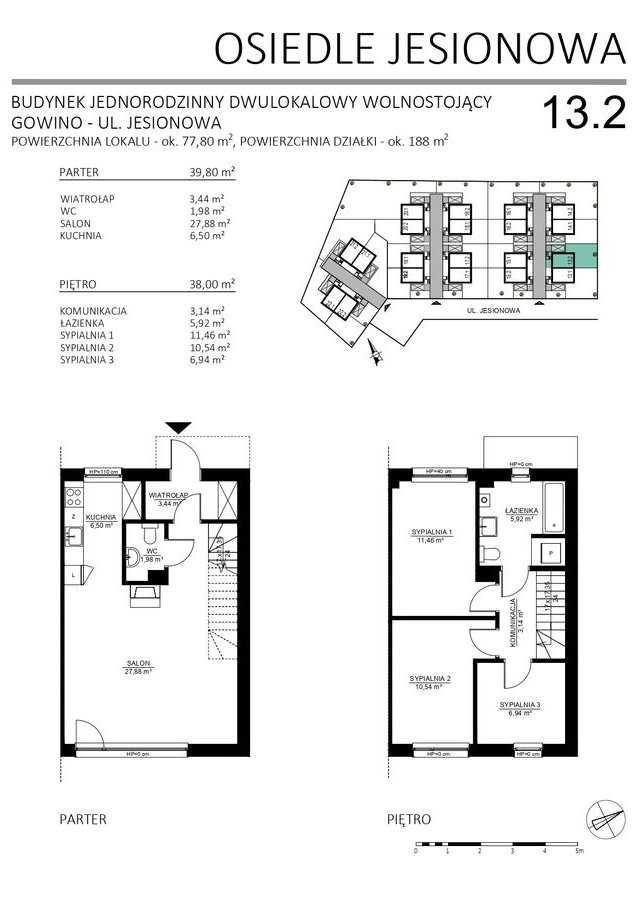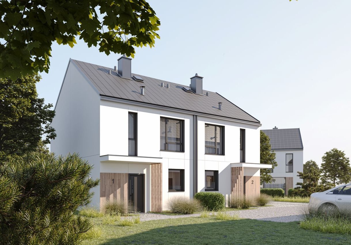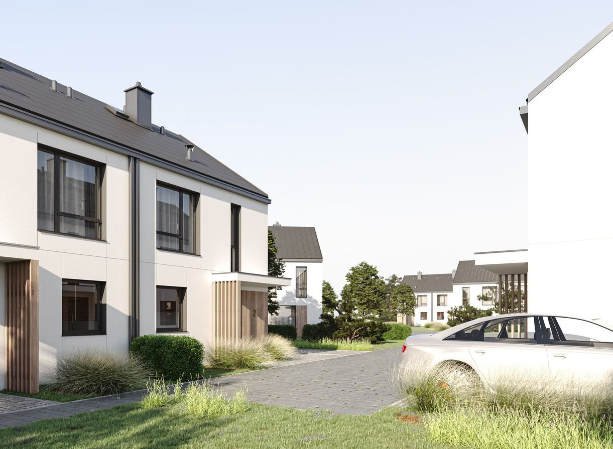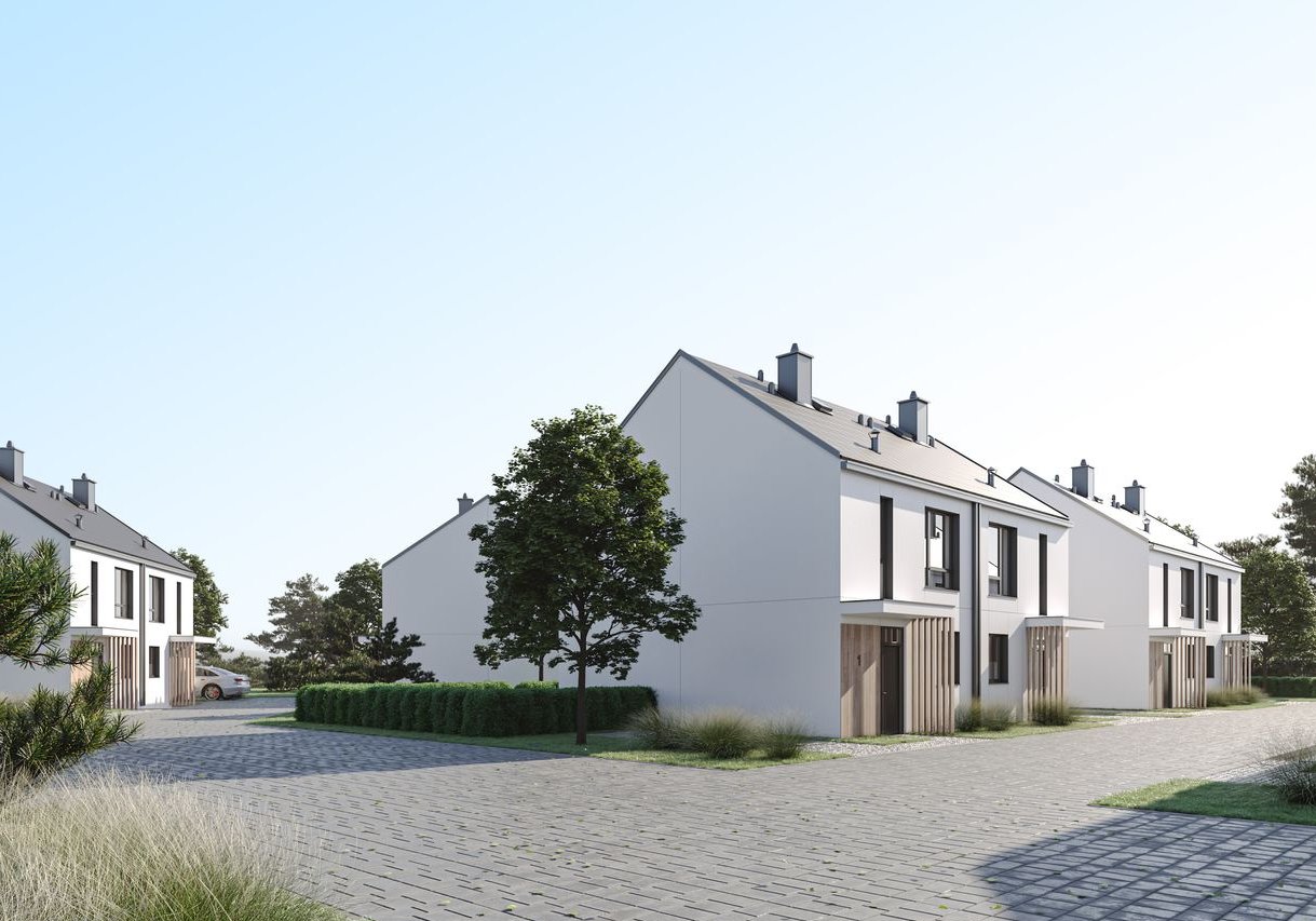 10 budynków dwulokalowych – łącznie 20 komfortowych mieszkań z ogródkami i miejscami postojowymi.