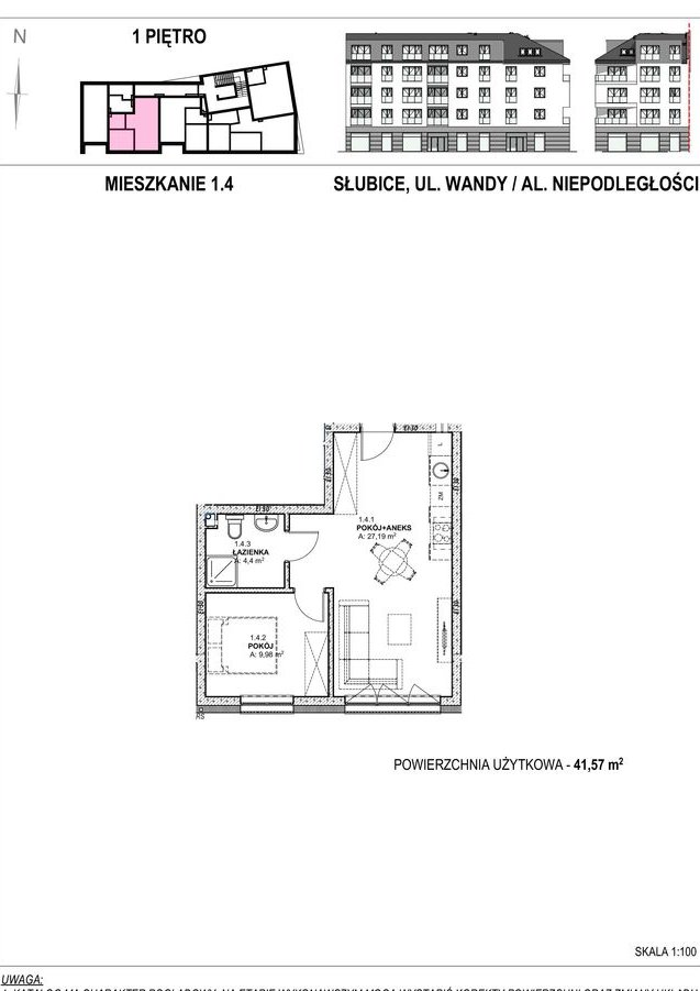 Oferujemy Państwu mieszkanie 2 pokojowe 1.4 w nowo budowanym domu wielorodzinnym, o powierzchni 41,57 mkw, w skład którego wchodzą: