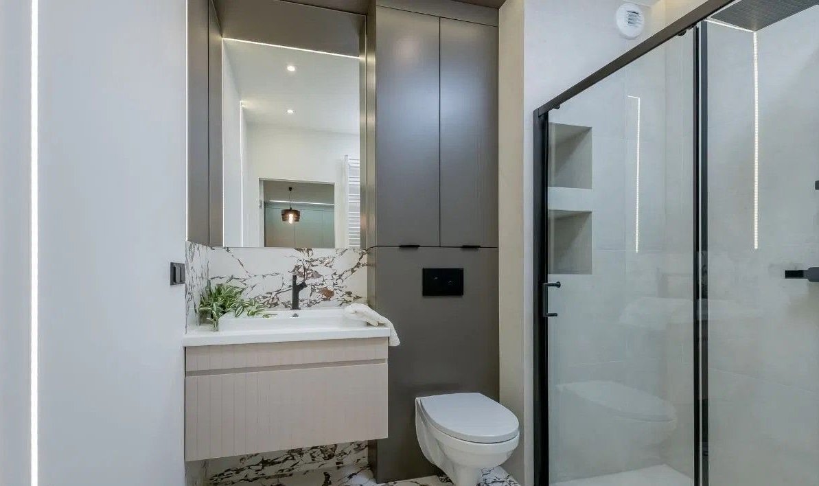 Nowoczesna łazienka z dużym prysznicem