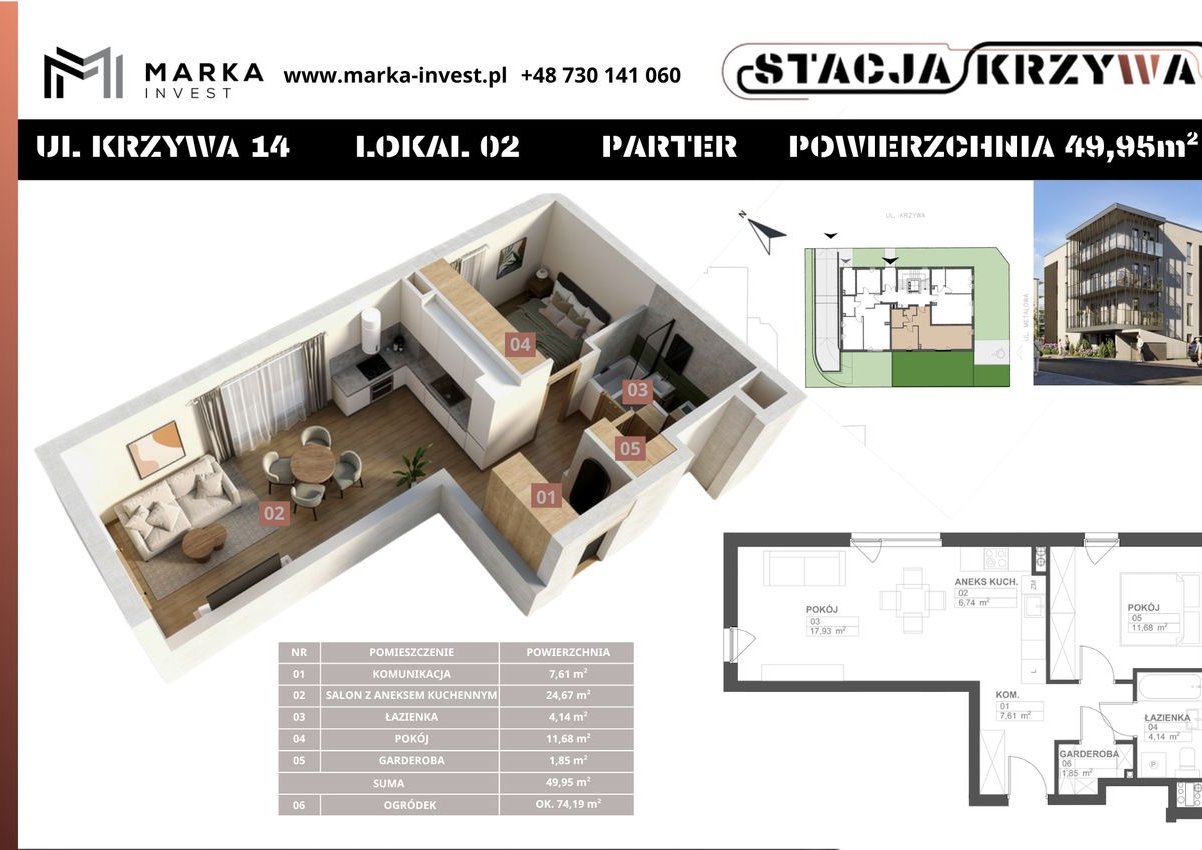 Stacja Krzywa 14 to kameralny budynek wielorodzinny realizowany w Poznaniu, w obrębie Górczyna. Inwestycja obejmuje zaledwie 13 mieszkań, co gwarantuje spokojną atmosferę i większą prywatność niż w dużych kompleksach mieszkaniowych.