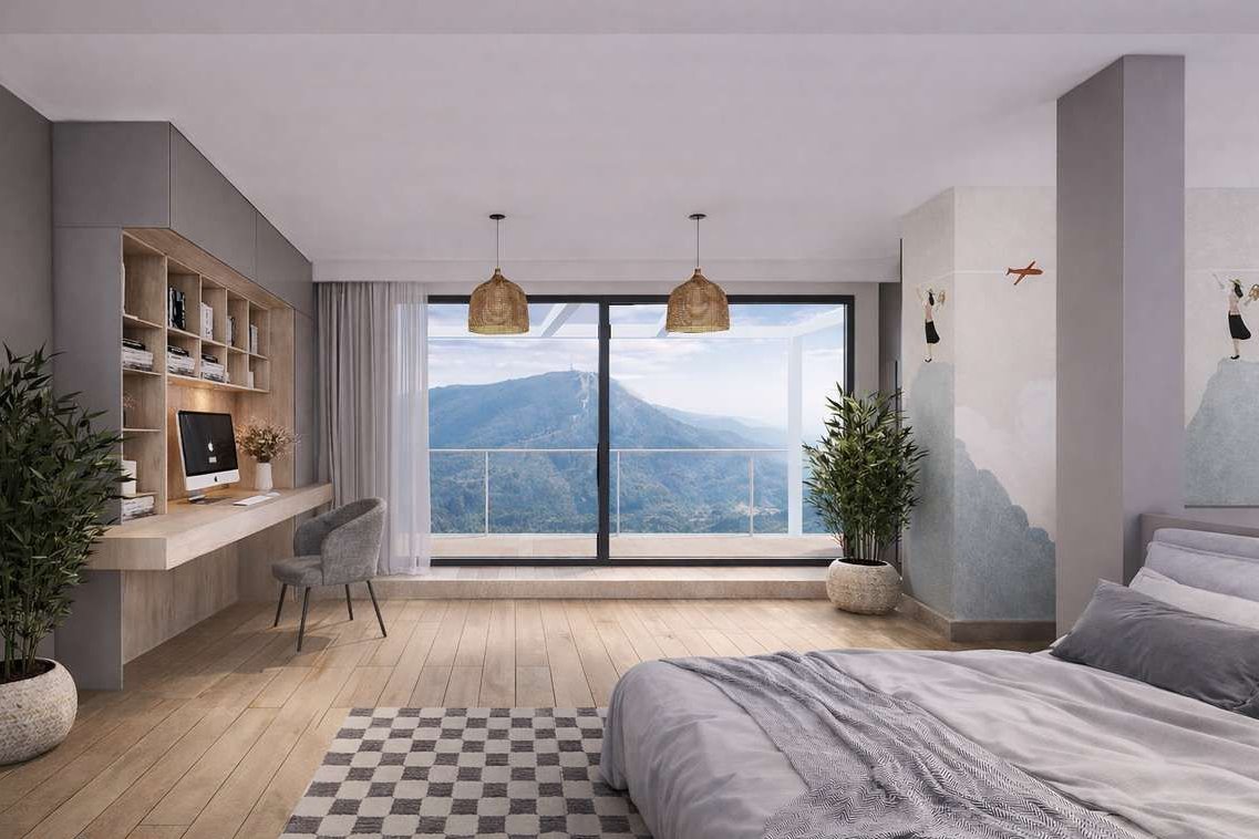 Powierzchnia mieszkania -110m2 ,salon z aneksem ,2 sypialnie, pomieszczenie gospodarcze lub spiżarnia, łazienka -usytuowane na pierwszej kondygnacji plus antresola o pow. 36,51m2 -to duży pokój ,może być zaaranżowany jako sypialnia z biurem z widokiem na góry i Skrzyczne z możliwością zrobienia drugiej łazienki.