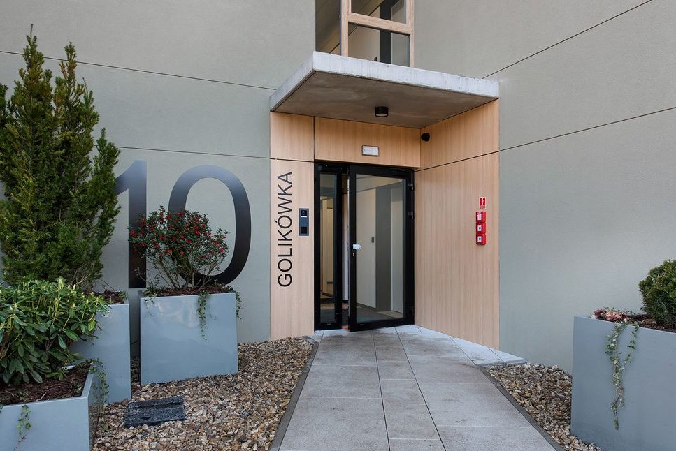 Budynek: nowoczesny, kameralny budynek z parkingiem podziemnym, miejscem do kąpieli zwierząt oraz miejscem serwisu rowerów otoczony zielenią, położony w spokojnej i rekreacyjnej dzielnicy.