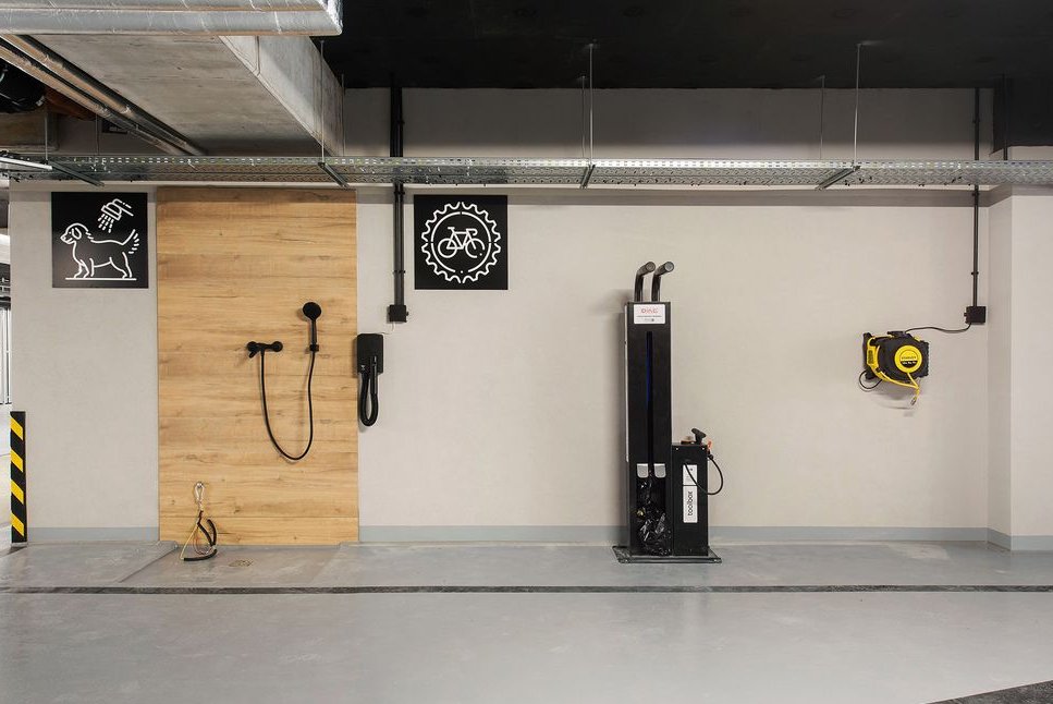 - miejsce do kąpieli zwierząt oraz miejsce serwisu rowerów,