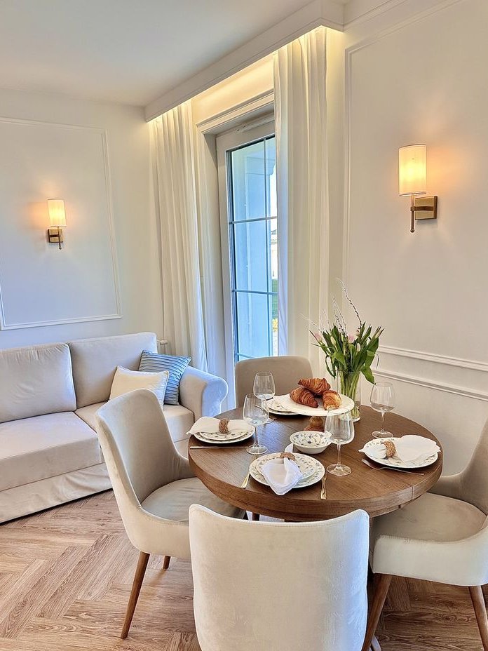 Mieszkanie zaprojektowane przez projektanta wnętrz z wysublimowanym gustem. Funkcjonalny układ pomieszczeń w pełni zadbany o ich ergonomię.