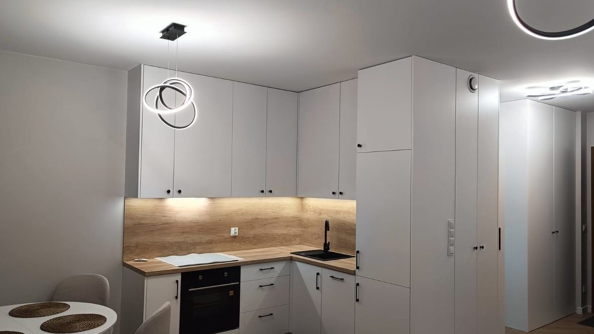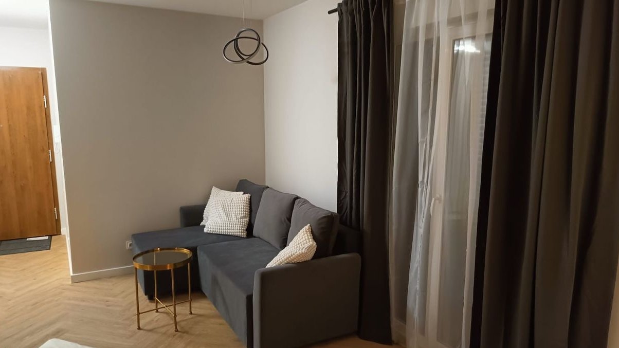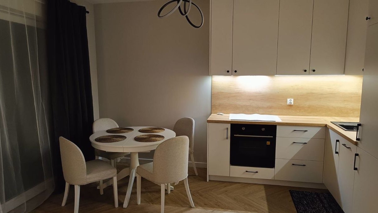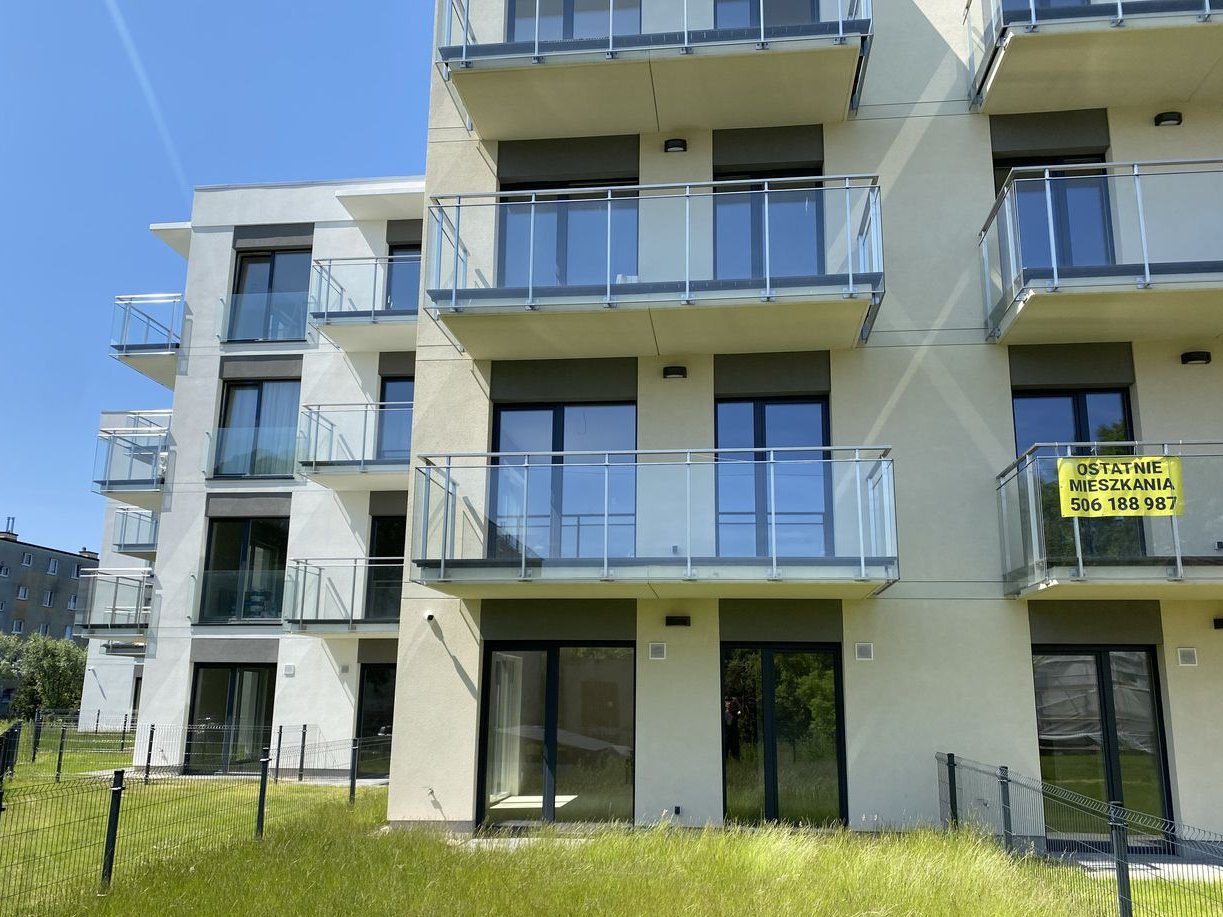 Nowe wykończone pod klucz mieszanie 1 pokojowe 34,35 mkw z tarasem i dużym ogródkiem 84 mkw. Ekspozycja okien na wschód i północ, zainstalowane rolety zewnętrzne sterowane pilotem.. Budynek oddany do użytkowania w 2025 r. z podziemną halą garażową. Mieszkanie składa się z przedpokoju, łazienki 3,90 mkw, salon z aneksem kuchennym. Na wyposażeniu meble w zabudowie na wymiar tj. szafy w przedpokoju, aneks kuchenny z AGD, stół, krzesł, kanapa rozkładana ( z możliwością spania). Ogródek ogrodzony i zagospodarowany. Oszczędne ogrzewanie podłogowe zasilane przez GPECDostępne także inne mieszkania 2 pokojowe.