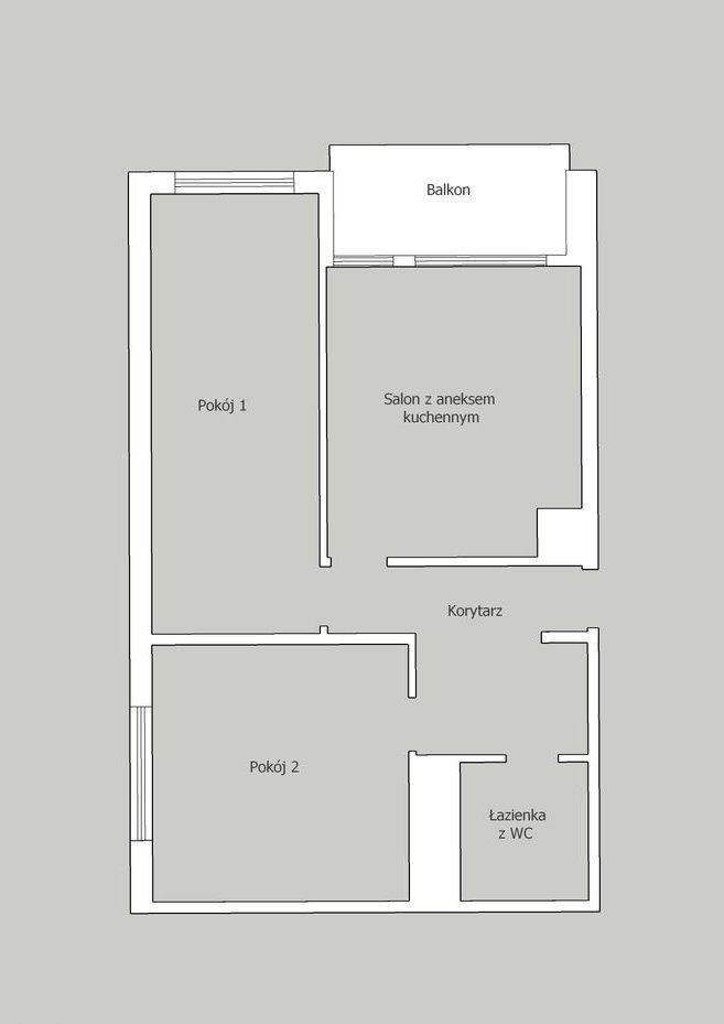 Komfortowy rozkład – salon z aneksem kuchennym + 2 osobne pokoje