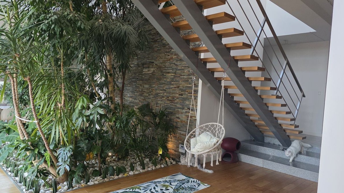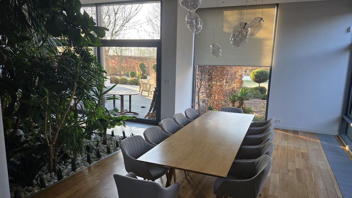 Dom oferuje 601 m² powierzchni użytkowej i usytuowany jest na starannie zagospodarowanej działce o powierzchni 4072 m², zapewniającej ciszę, intymność i komfort codziennego życia. Układ funkcjonalny obejmuje reprezentacyjną strefę dzienną, nowoczesną kuchnię premium z zabudową na wymiar, jadalnię z widokiem na oranżerię wkomponowaną w antresolę oraz wyraźnie wydzieloną strefę prywatną.