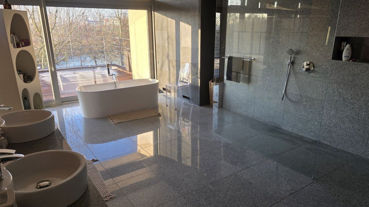 Położenie domu na końcu ślepej uliczki sprawia, że zarówno ogród, jak i tarasy są całkowicie odizolowane od hałasu i sąsiedniego ruchu, oferując atmosferę prywatnej rezydencji poza miastem.