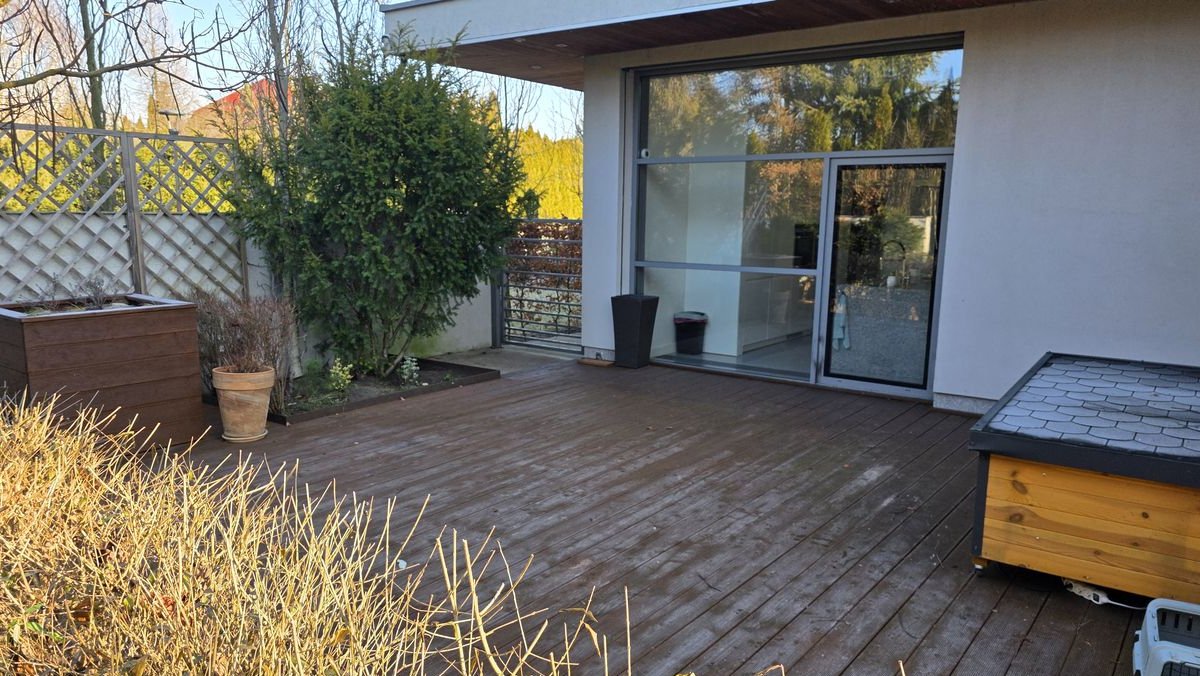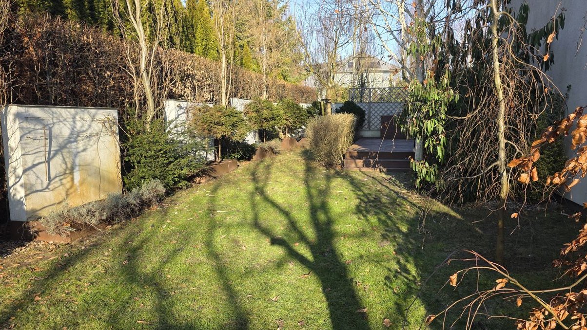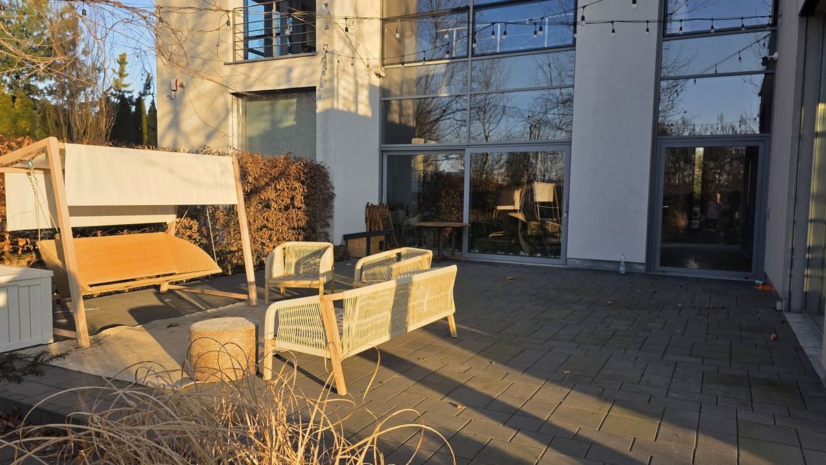Integralną częścią rezydencji jest przestronny, starannie zaprojektowany ogród z wysokim zadrzewieniem, stanowiący naturalne przedłużenie strefy dziennej. Nieruchomość oferuje dwa niezależne tarasy: