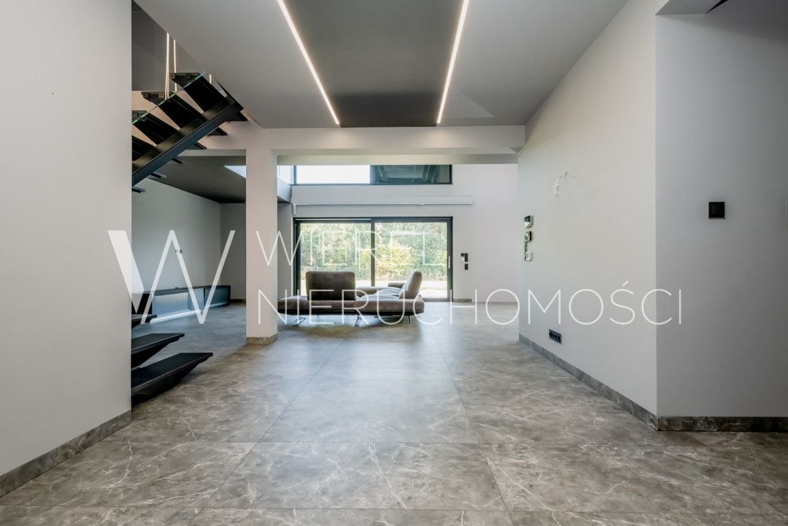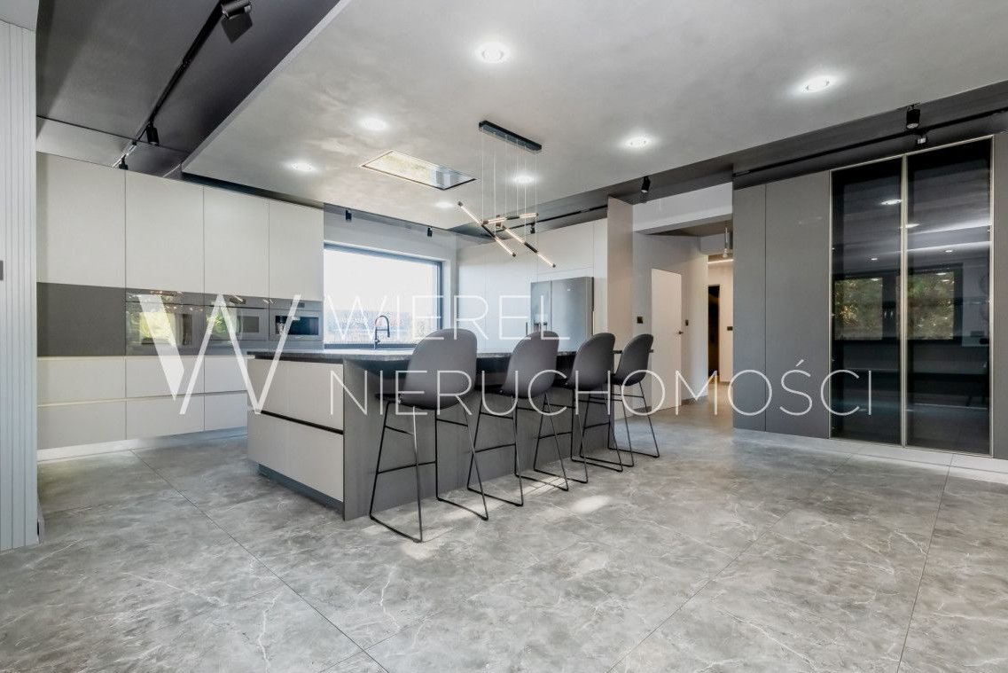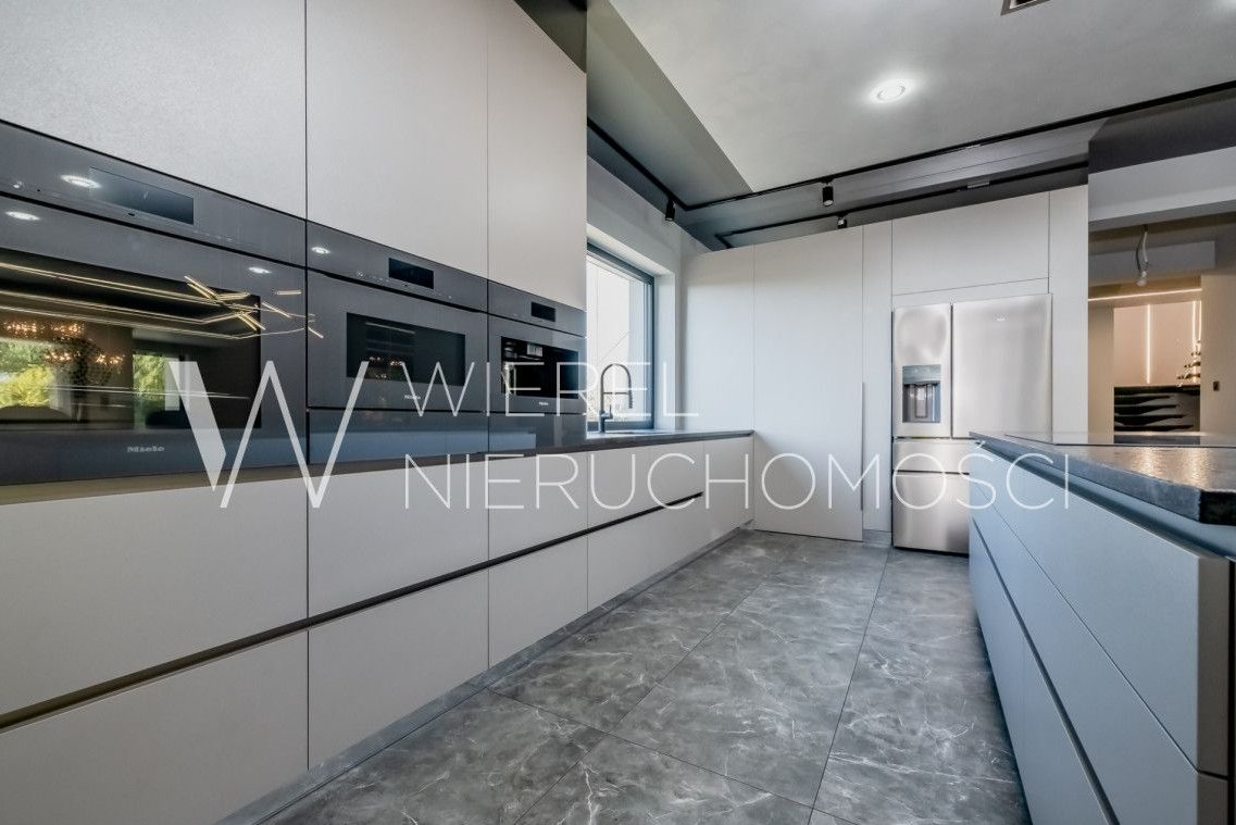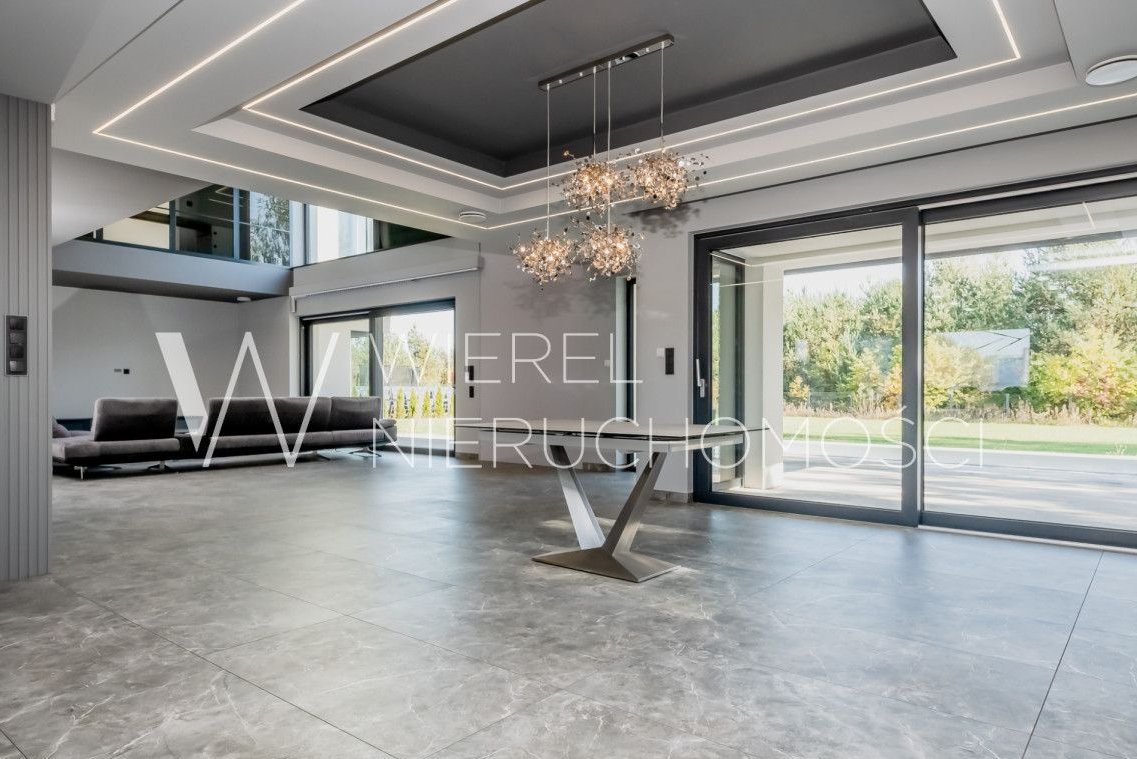 Dodatkowym atutem jest przestrzeń biurowa z elegancką łazienką. Duży, reprezentacyjny gabinet składający się z trzech pomieszczeń, z których jedno posiada efektowne przeszklenie z widokiem na salon i ogród. To idealne miejsce do pracy, spotkań lub kreatywnej działalności.