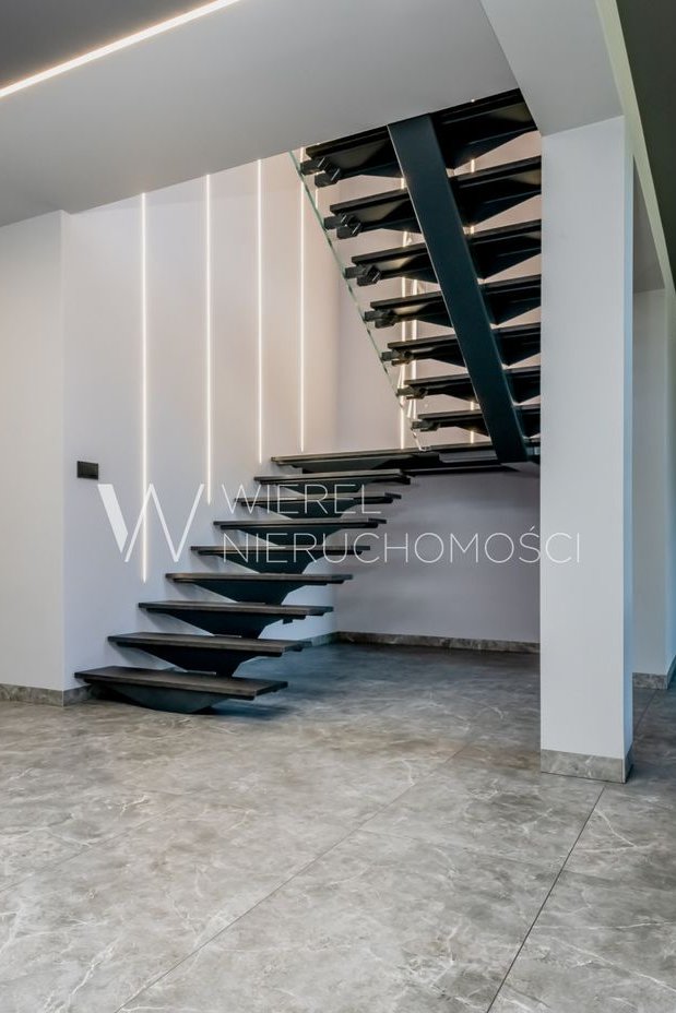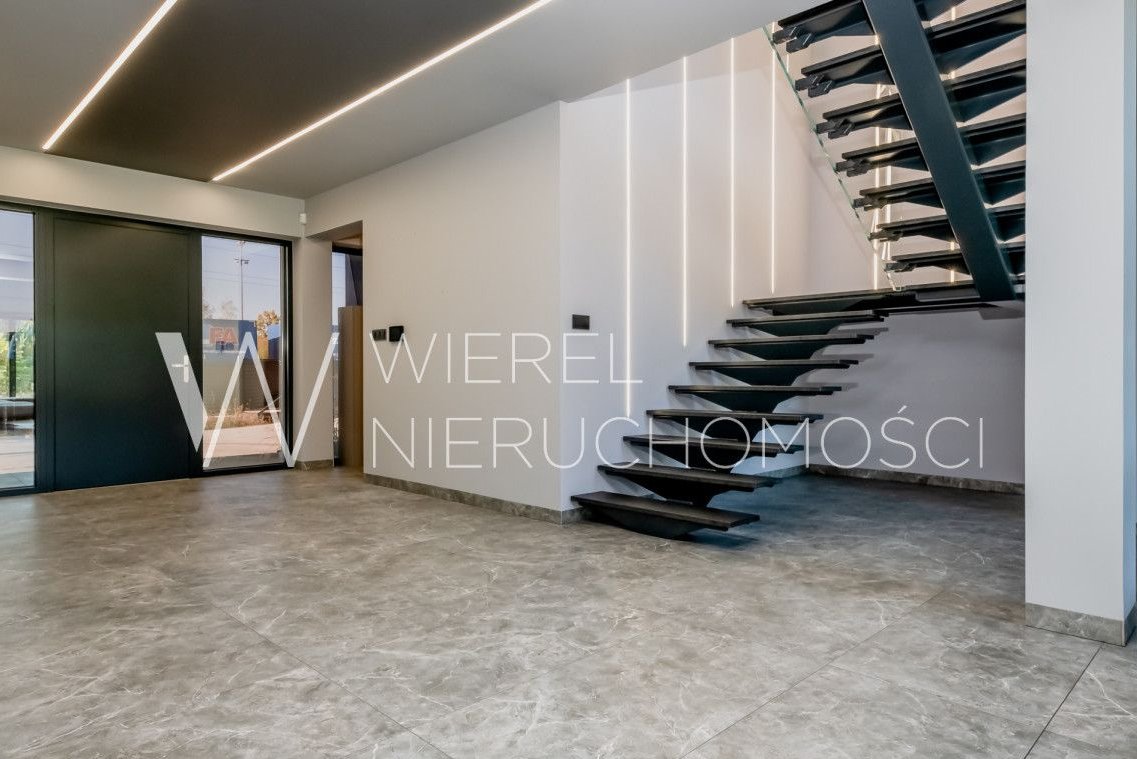 Całość dopełniają automatyczne rolety zewnętrzne, zapewniające prywatność i bezpieczeństwo.