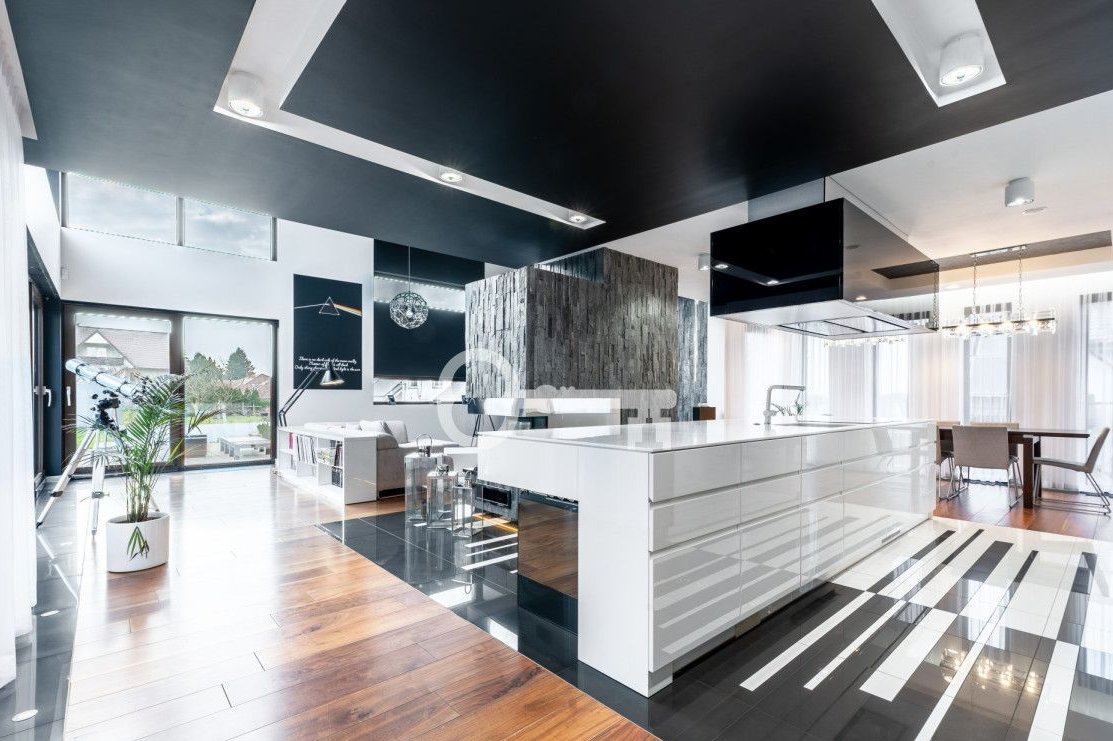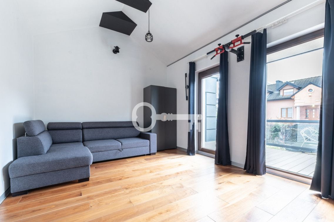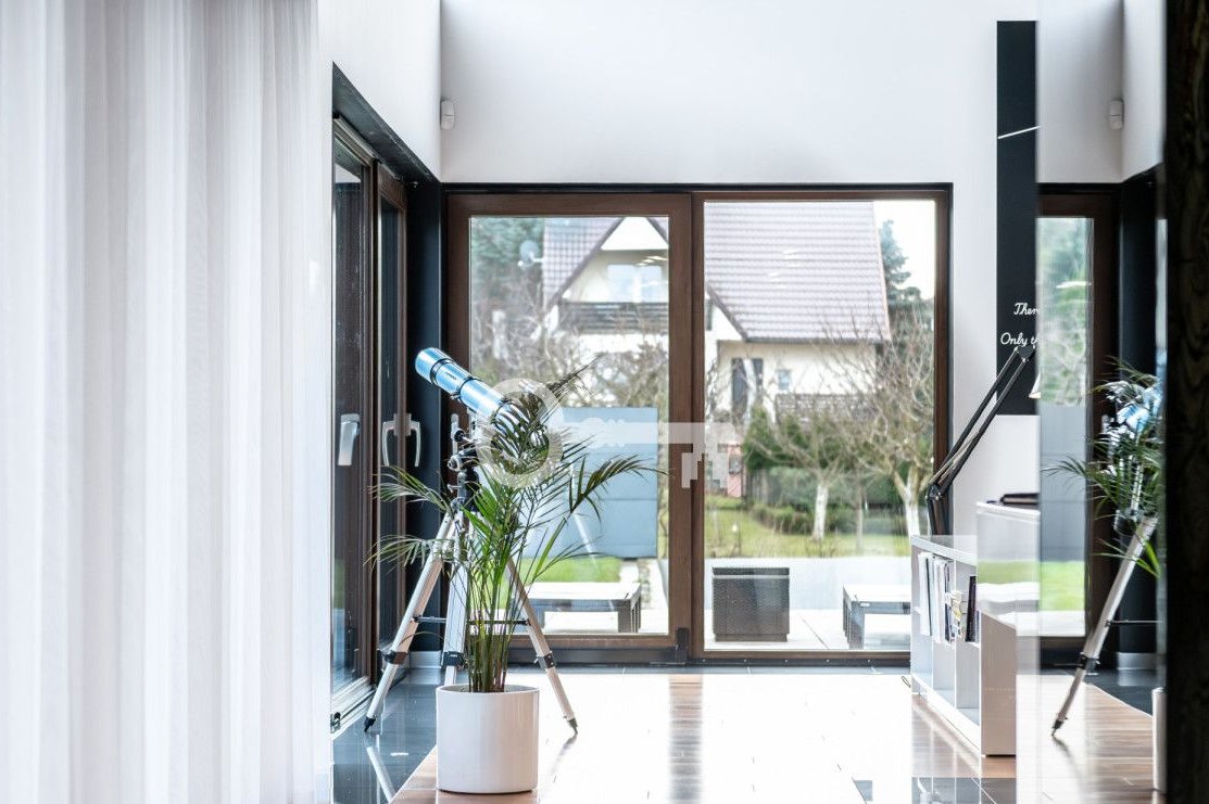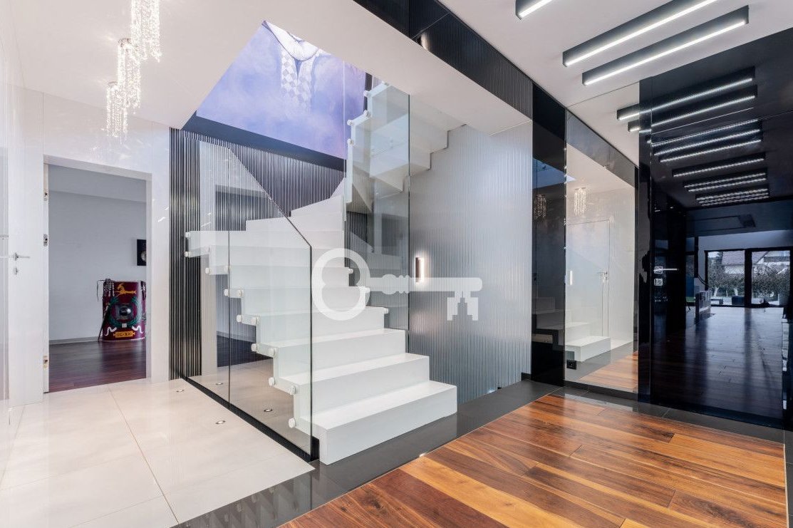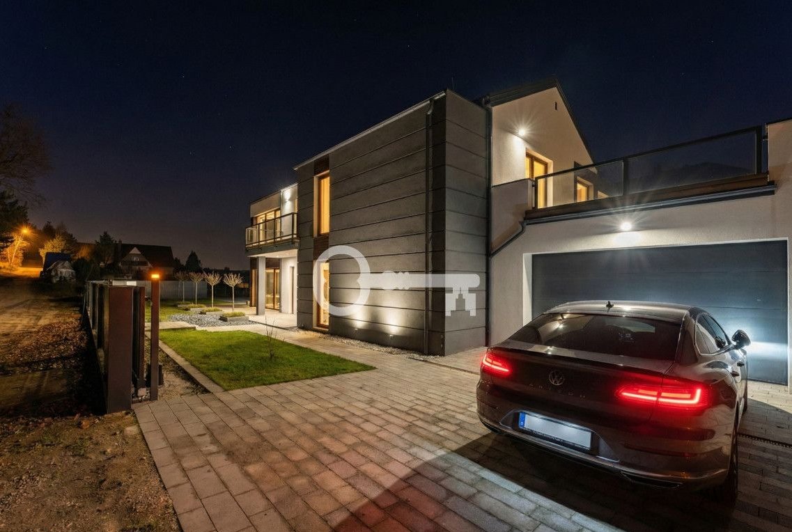 The entire house is finished using top-quality materials. The interior is cohesive and consistently designed by an architect, with attention paid to every detail, even the smallest ones. The Smart Home system used is a major modern convenience for everyday living. The kitchen is fully equipped with high-end household appliances. The house is fitted with an alarm system, burglar-proof doors, and shutters.