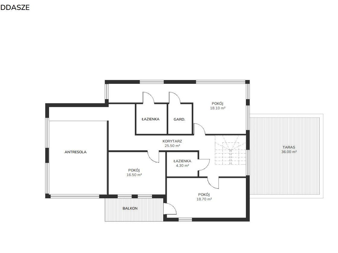 * a room designed as a master bedroom connected to a bathroom, to be finished according to the prepared design, with the option to create two walk-in wardrobes or a sauna - approx. 33 m²,