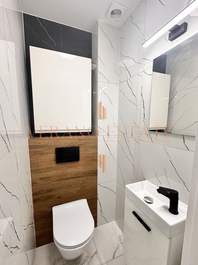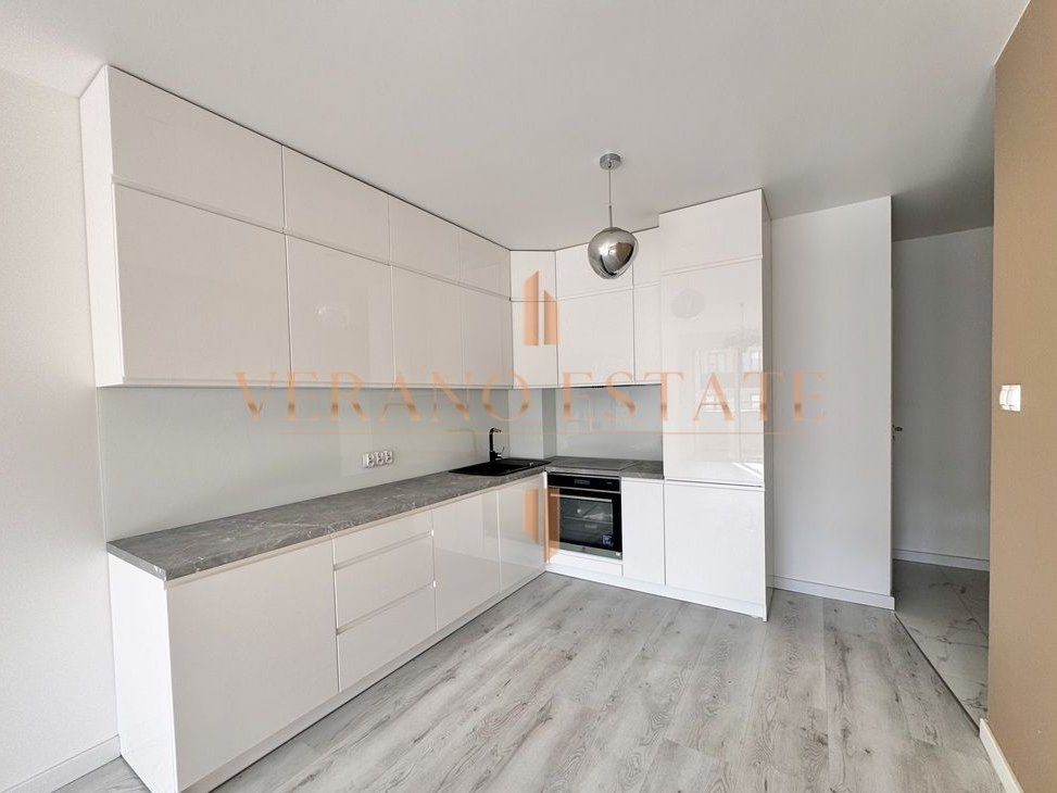 Wnętrze zostało wykończone w nowoczesnym, spójnym stylu z dbałością o detale. Kuchnia wykonana na wymiar (cichy domyk), wyposażona w nowy sprzęt AGD firmy Electrolux i Samsung.