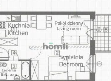 - Przestronny salon z w pełni wyposażonym aneksem kuchennym oraz wyjściem na balkon