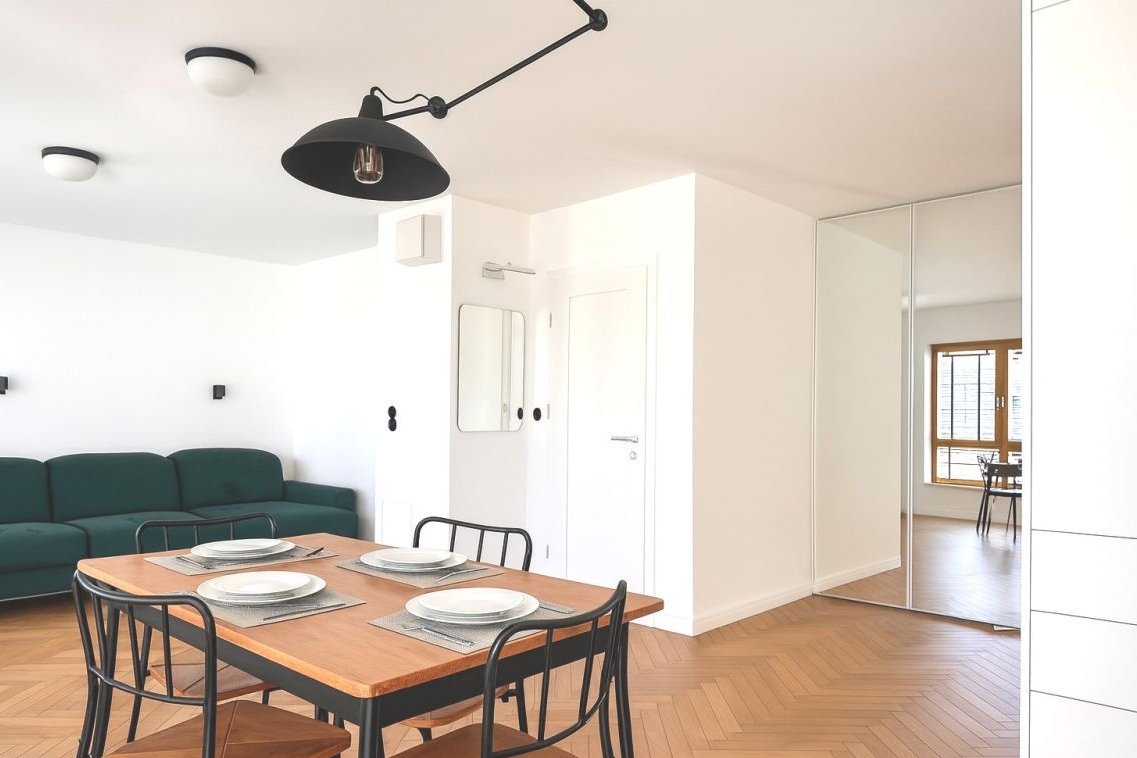 Mieszkanie ma funkcjonalny, dwupoziomowy układ, który daje dużą swobodę aranżacyjną oraz komfort codziennego użytkowania. Obecnie wykorzystywane jest jako dwa niezależne lokale, jednak bez większych nakładów można przywrócić jego pierwotną funkcję i stworzyć przestronne mieszkanie dla rodziny lub połączyć funkcję mieszkalną z pracą zdalną czy działalnością.
